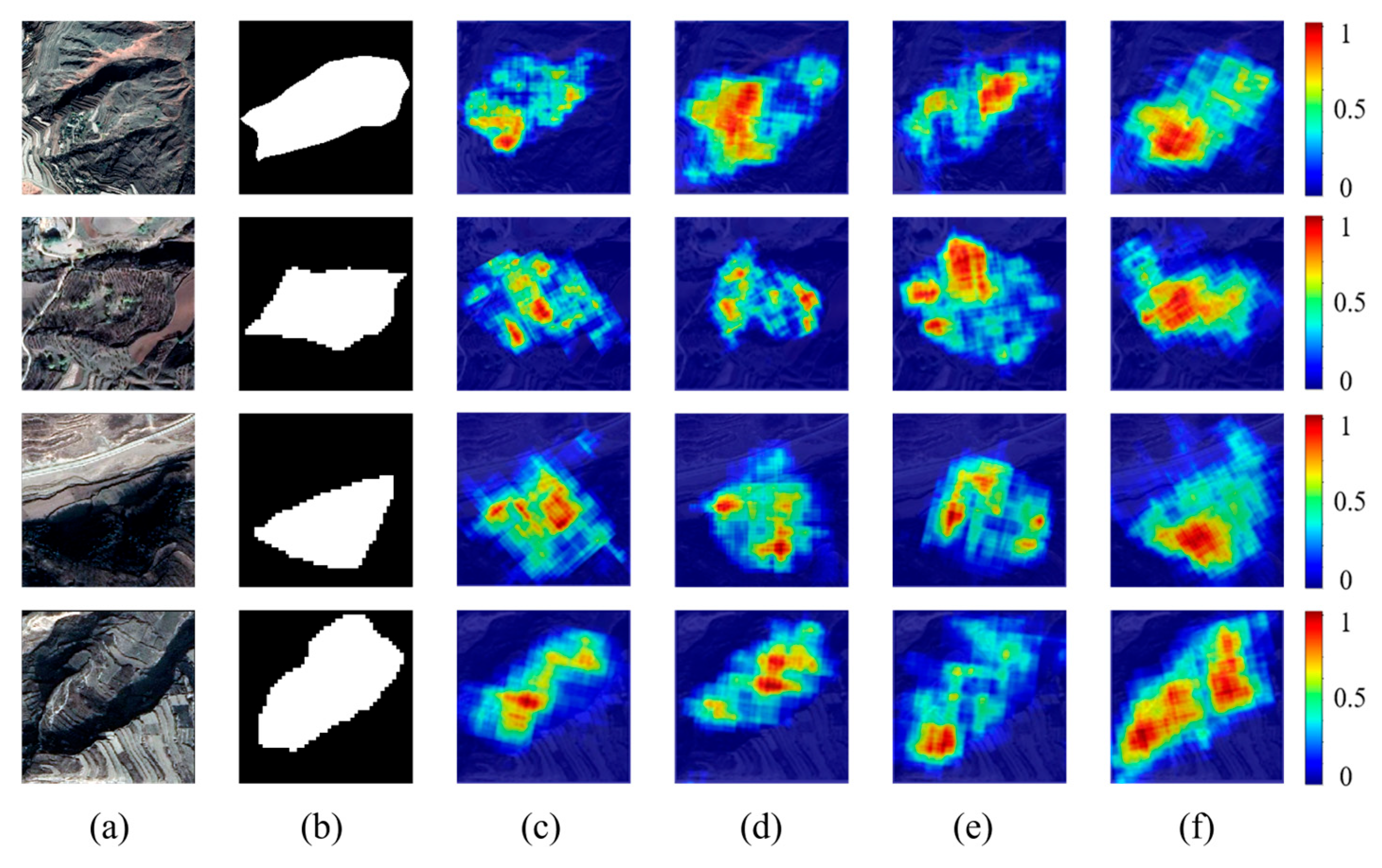 17] proposed a landslide detection method simulating hard samples, achieving a 10% improvement in F1-score over the baseline Mask-RCNN model. Although these methods have advanced the accuracy of old landslide detection, their F1-scores remain below 0.6. Hence, reliable detection of old landslides remains a significant challenge.