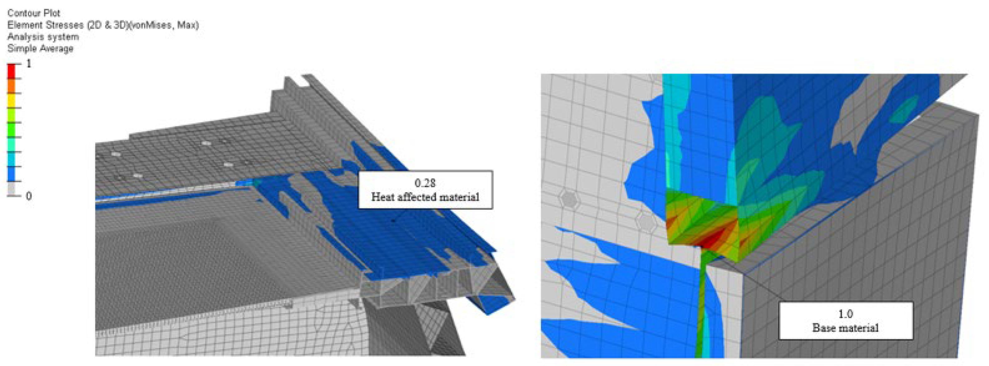- The proposed hybrid aluminium–sandwich carbody achieved comparable structural performance to the original while enabling significant mass reduction, with a weight saving of approximately 60% compared to the components replaced in the original structure, corresponding to 3.9% if referring to the whole structure.