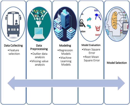 - Serin, F.; Alisan, Y.; Erturkler, M. Predicting bus travel time using machine learning methods with three-layer architecture. Measurement 2022, 198, 111403. [Google Scholar] [CrossRef]