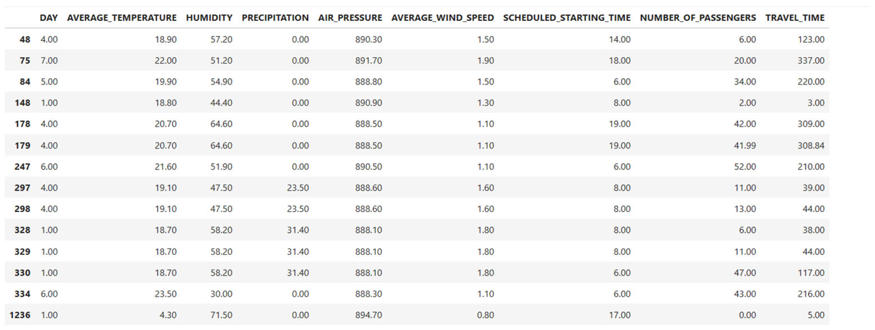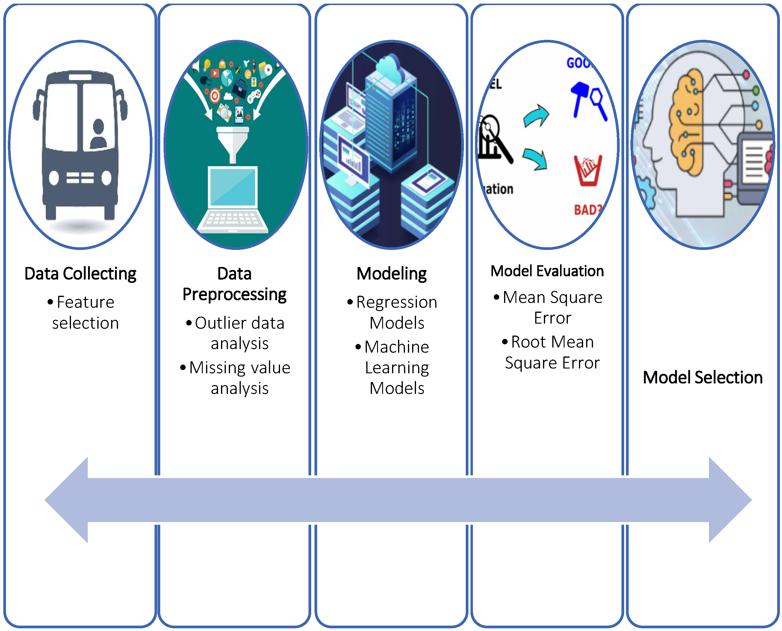 | Ashwini et al. [7] | Linear Regression, Ridge Regression, Least Absolute Shrinkage and Selection Operator Regression, Support Vector Regression, K-Nearest Neighbors, Regression Trees, Random Forest Regression, Gradient Boosting Regression | Showed temporal and route-direction variables improve performance; however, no weather or external conditions were included. |