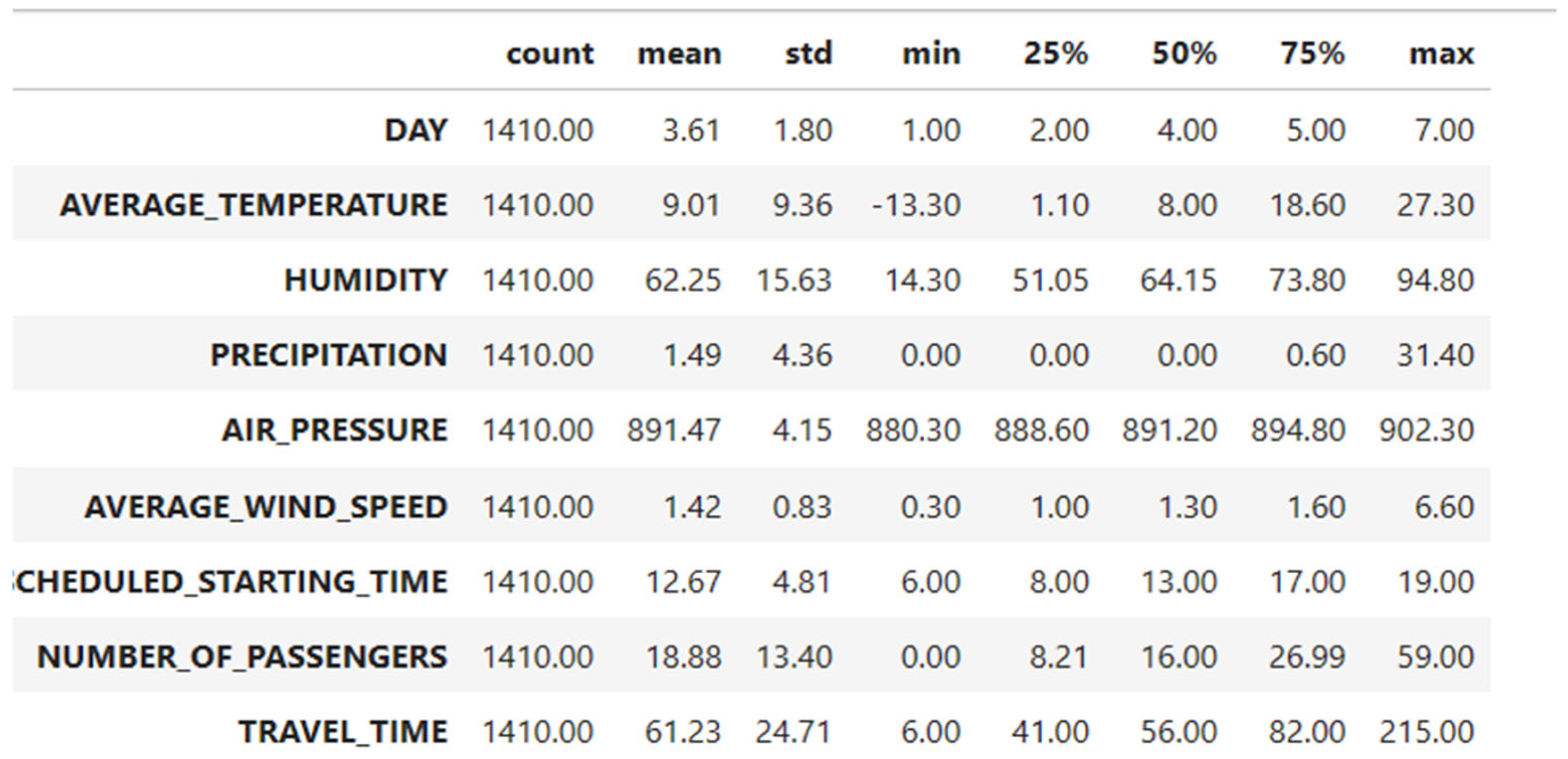 | AVERAGE_TEMPERATURE | Shows the average temperature during the day. |