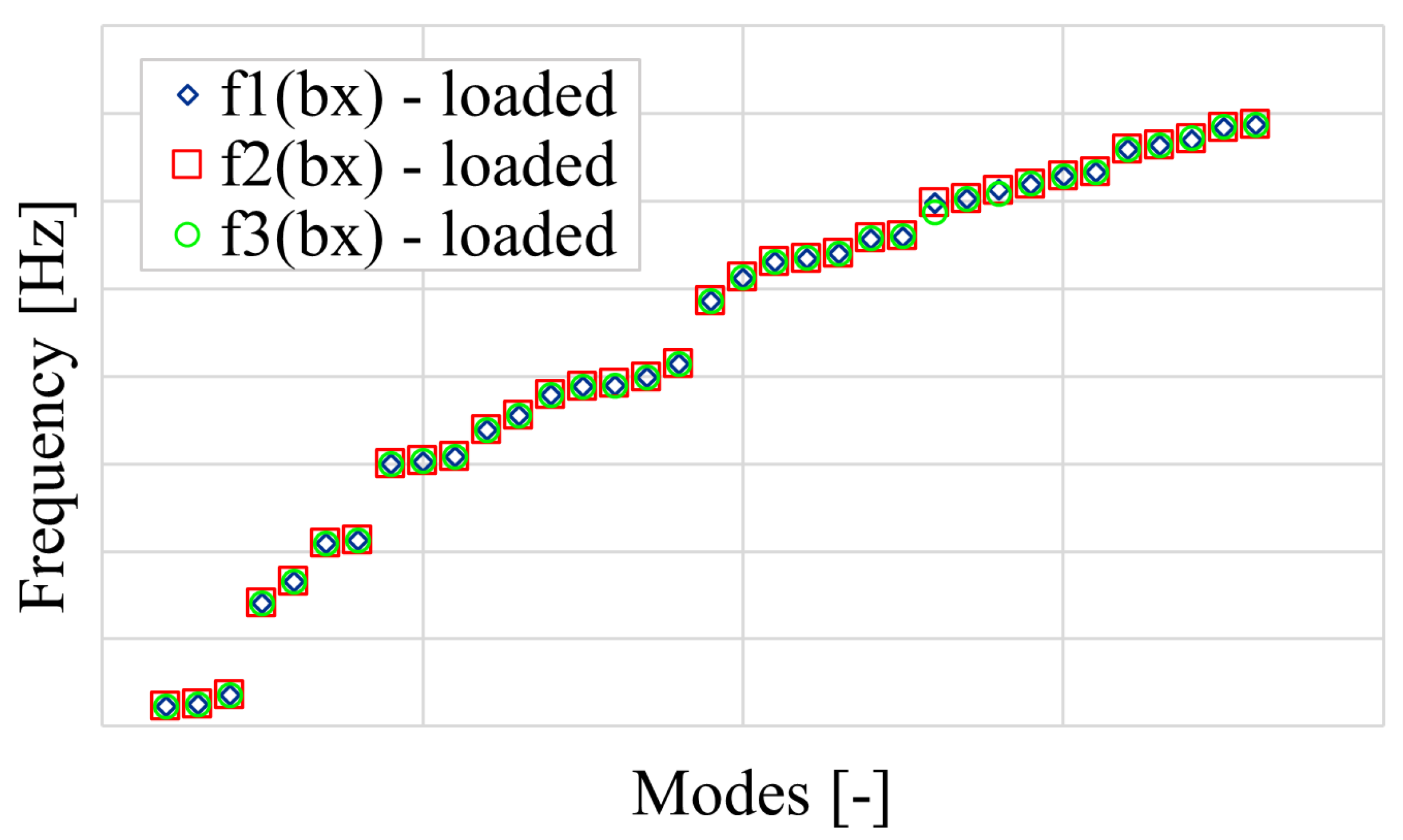 Figure 27 exhibits three distinct resonance clusters within the frequency range of interest. The lowest frequency peak is governed by bending around the