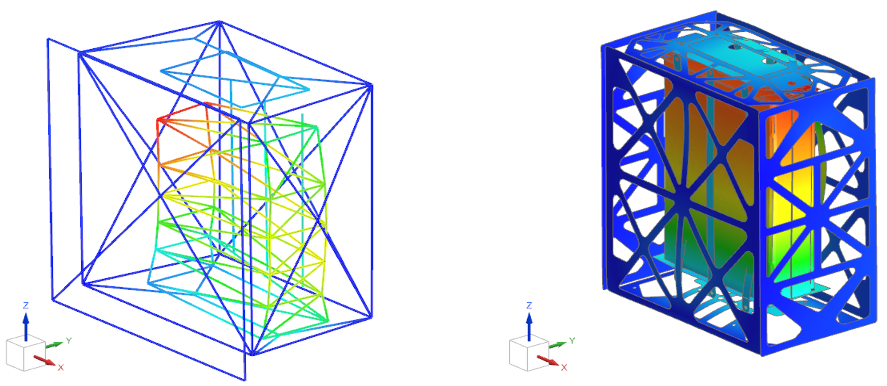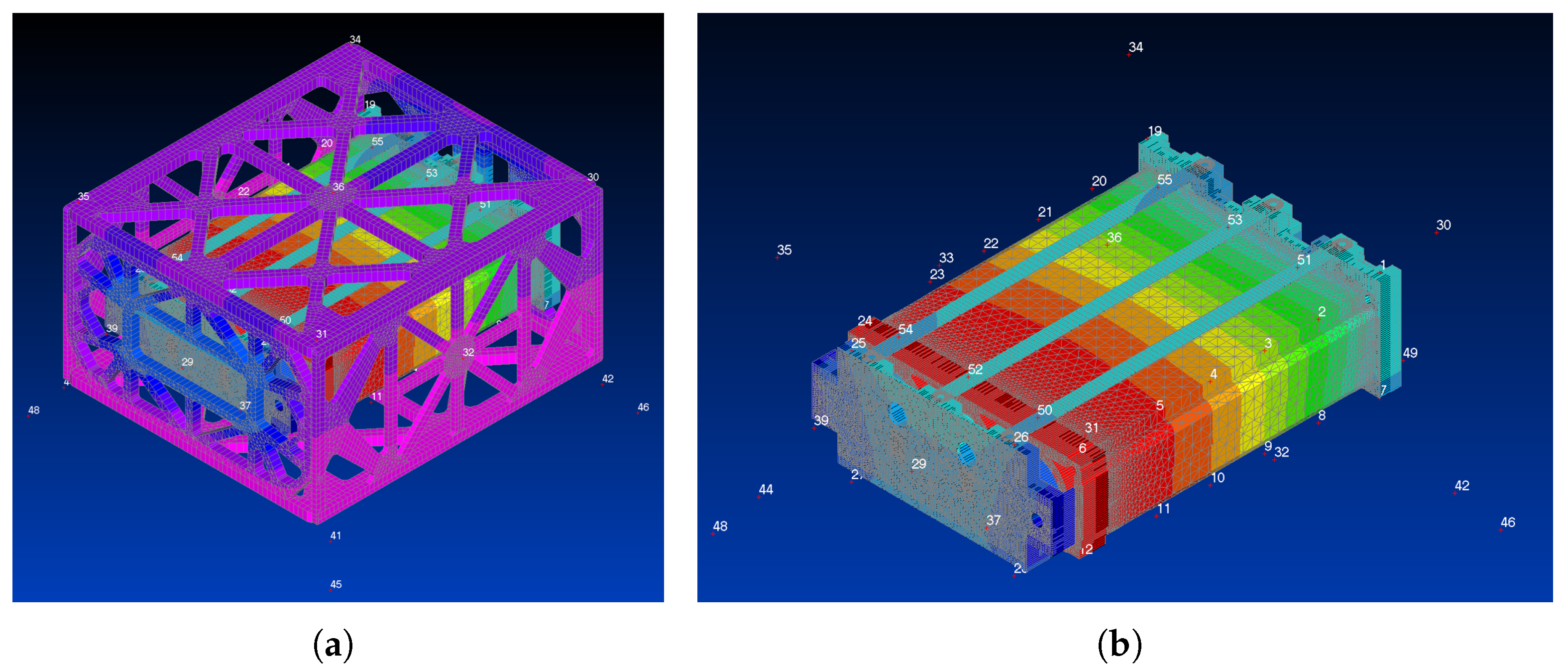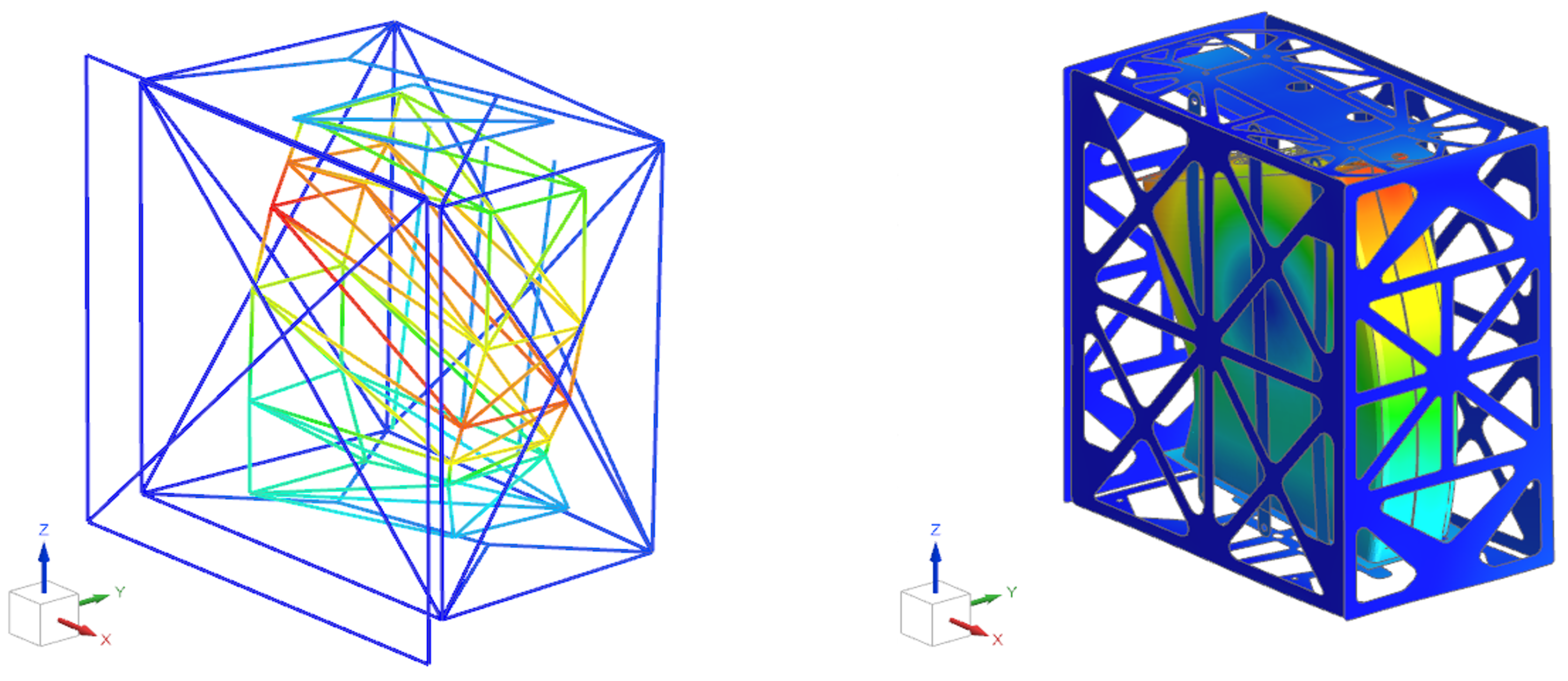 During the experimental campaign, a harmonic base excitation of 0.7 g was applied over the 10–300 Hz bandwidth, sequentially in the x, y and z directions. A control accelerometer mounted on the cube shaker table ensured that the desired input was accurately reproduced in the analyzed direction. The tuning of the FE model natural frequencies relied exclusively on the open-loop pseudo-random excitation run in the z direction, whereas the sine sweep tests in all three directions provide the comparison dataset discussed in the following. This choice allows residual numerical–experimental discrepancies to be more clearly attributed to unmodelled nonlinearities (e.g., bolted joints and contact interfaces) and to limitations in the representation of the test boundary conditions.