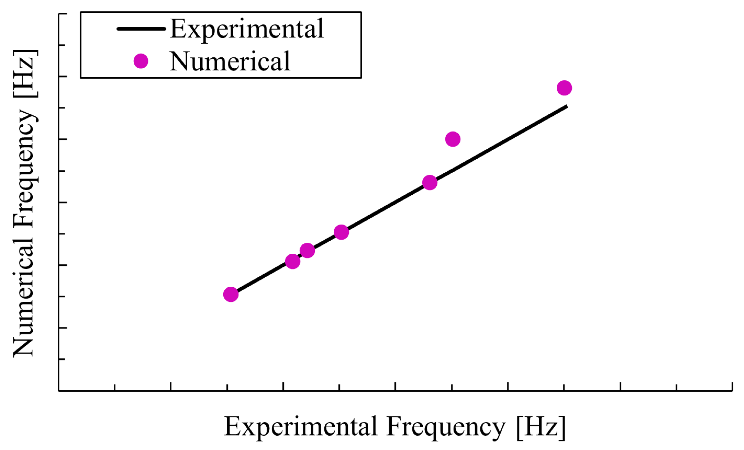 Figure 23 compares the experimental and numerical acceleration spectra obtained from sensor #6 on the compression plate. Along the