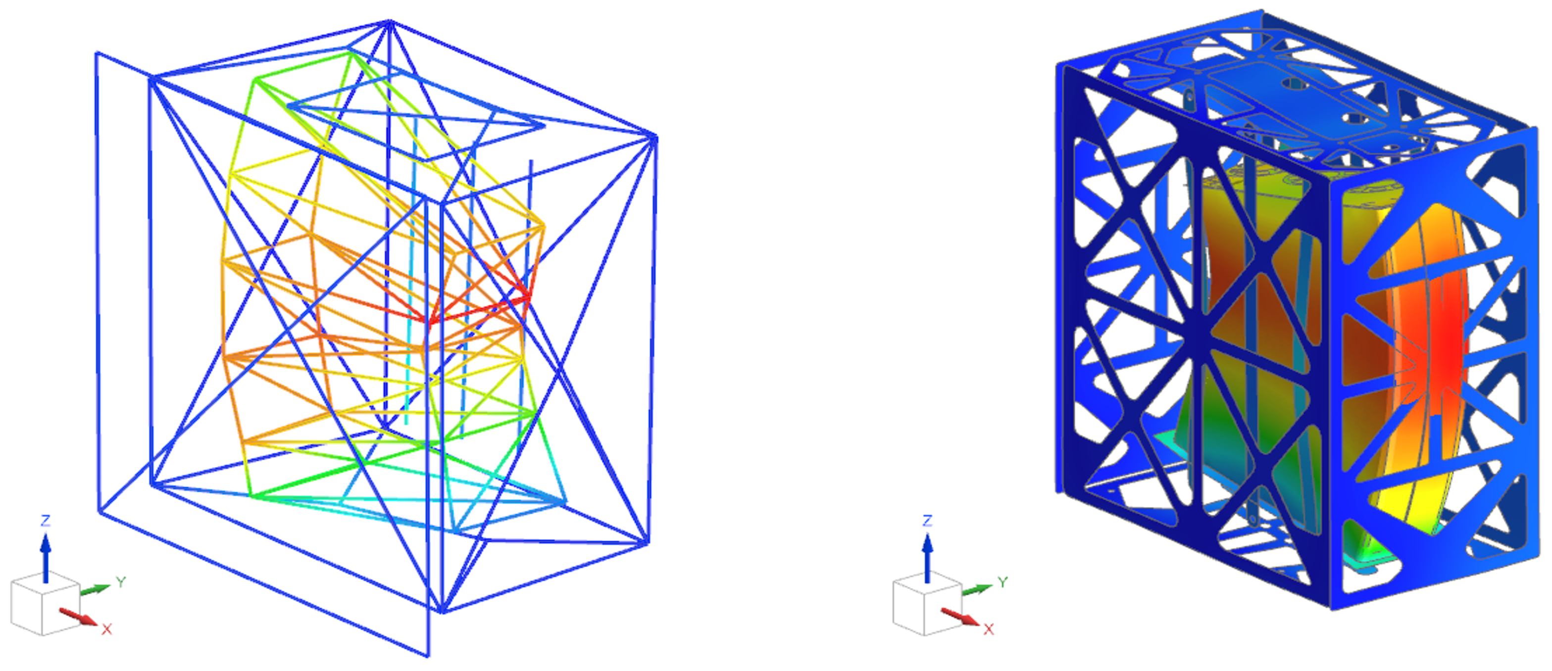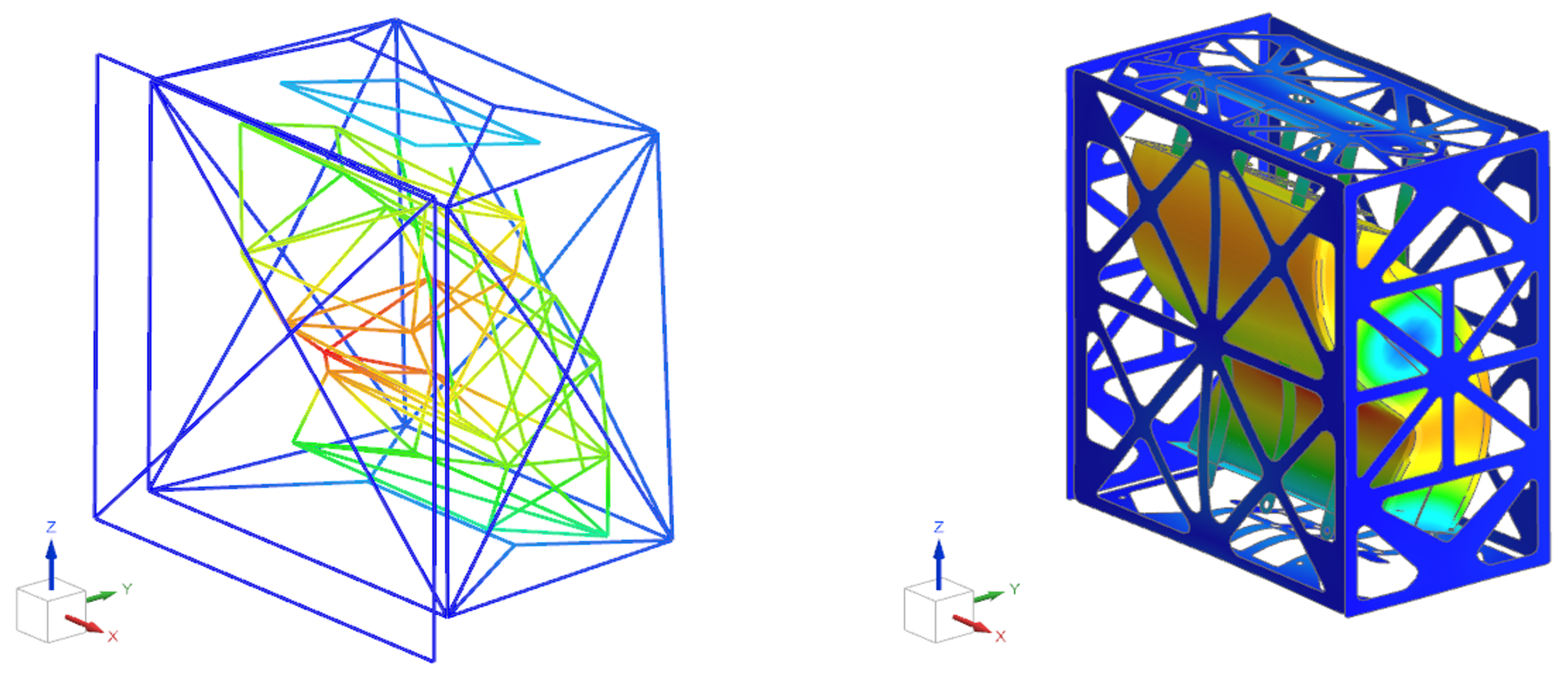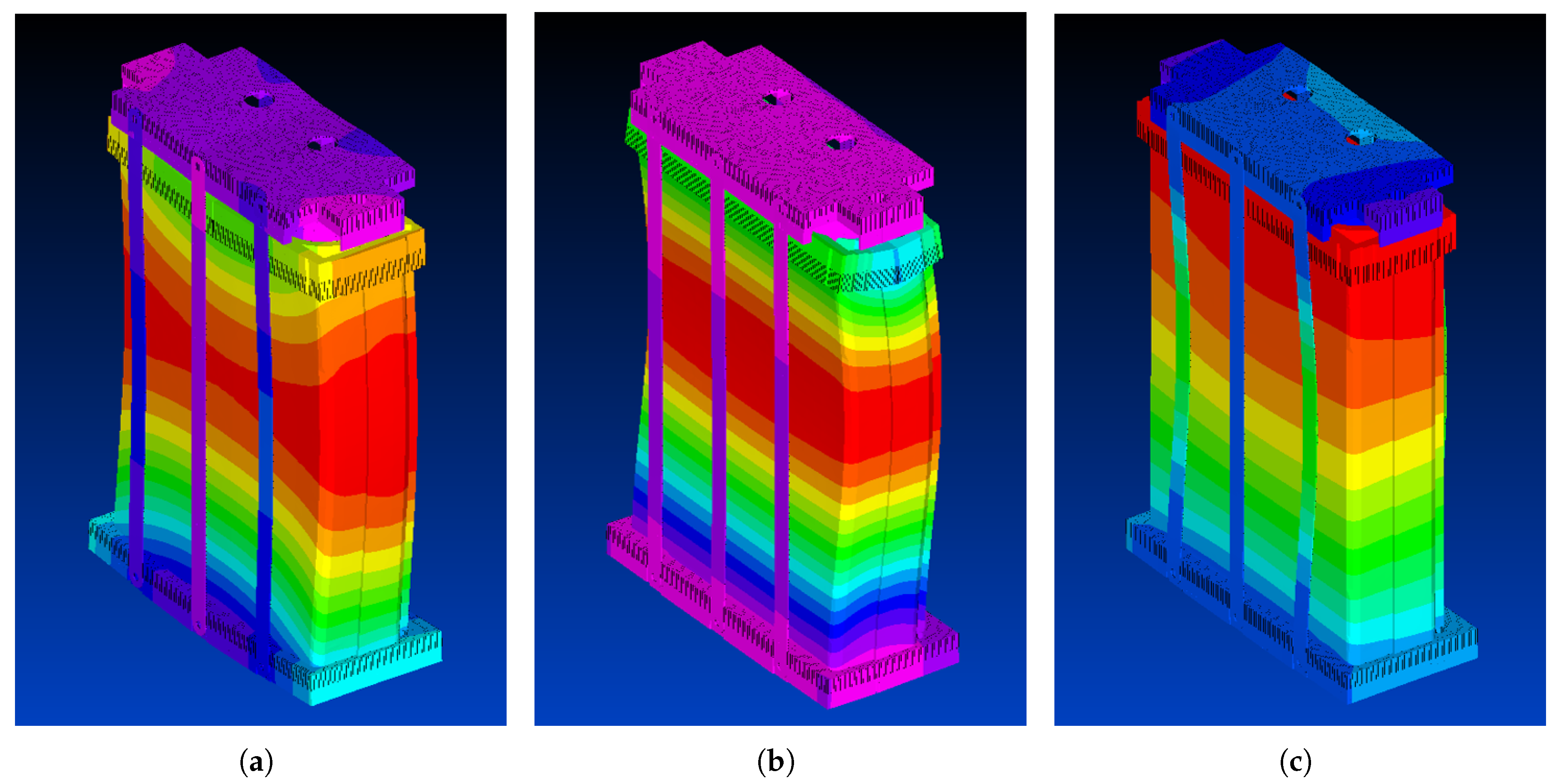 Figure 29 illustrates contour plots of the total displacement extracted at the resonance frequency corresponding to each of the three principal axis excitations in the standard immunity harmonic analysis.