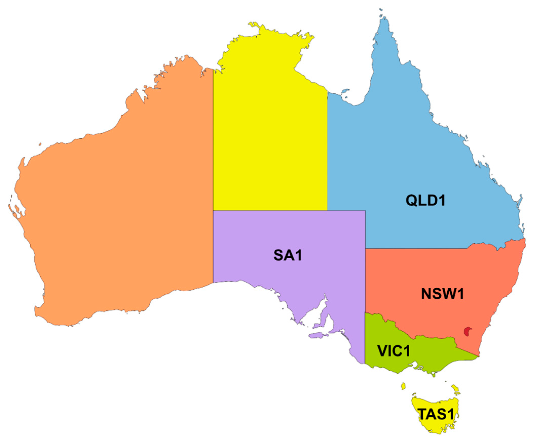 36]. While the evaluation focused on the NSW1, QLD1, and VIC1 NEM regions, the data collection and pipeline included all interconnected NEM regions, such as SA1 and TAS1. This comprehensive approach was taken because these regions are integral parts of the interconnected energy market [