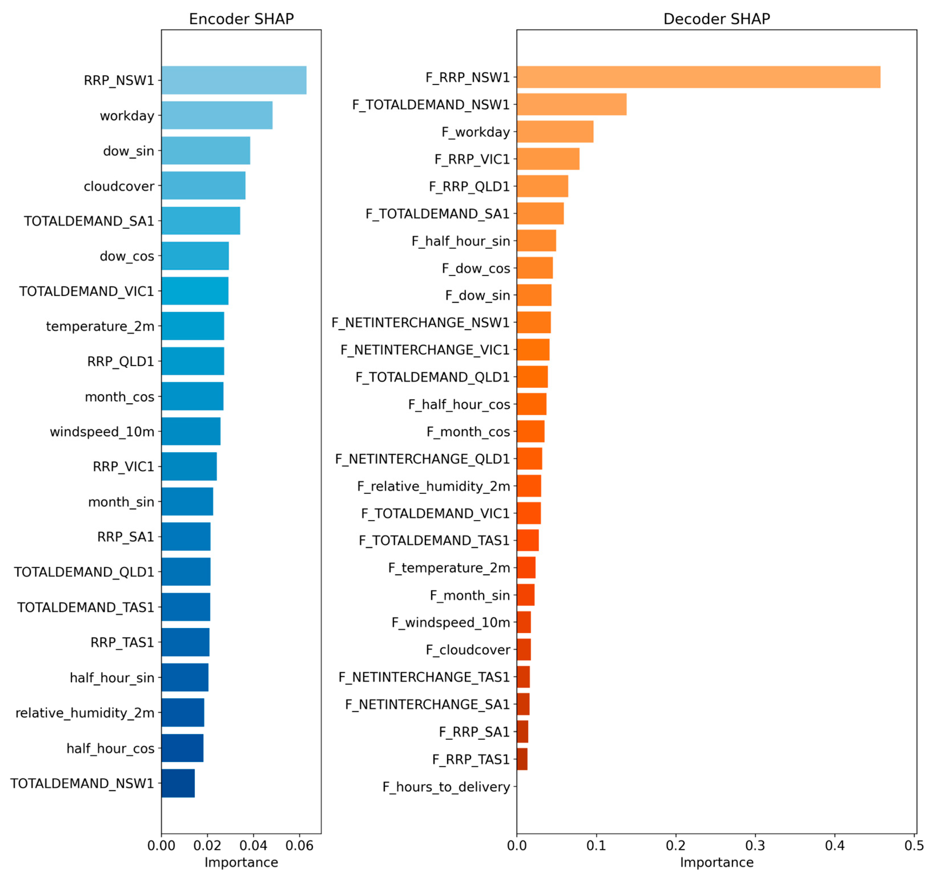 40]. These included time-based encodings capturing diurnal, weekly, and seasonal cycles. Weather features that were expected to have the greatest impact on regional electricity generation and consumption were chosen. RRP, demand and net interchange features were included for all NEM regions since they are all interconnected and influence prices in each. The complete list of features used is shown in