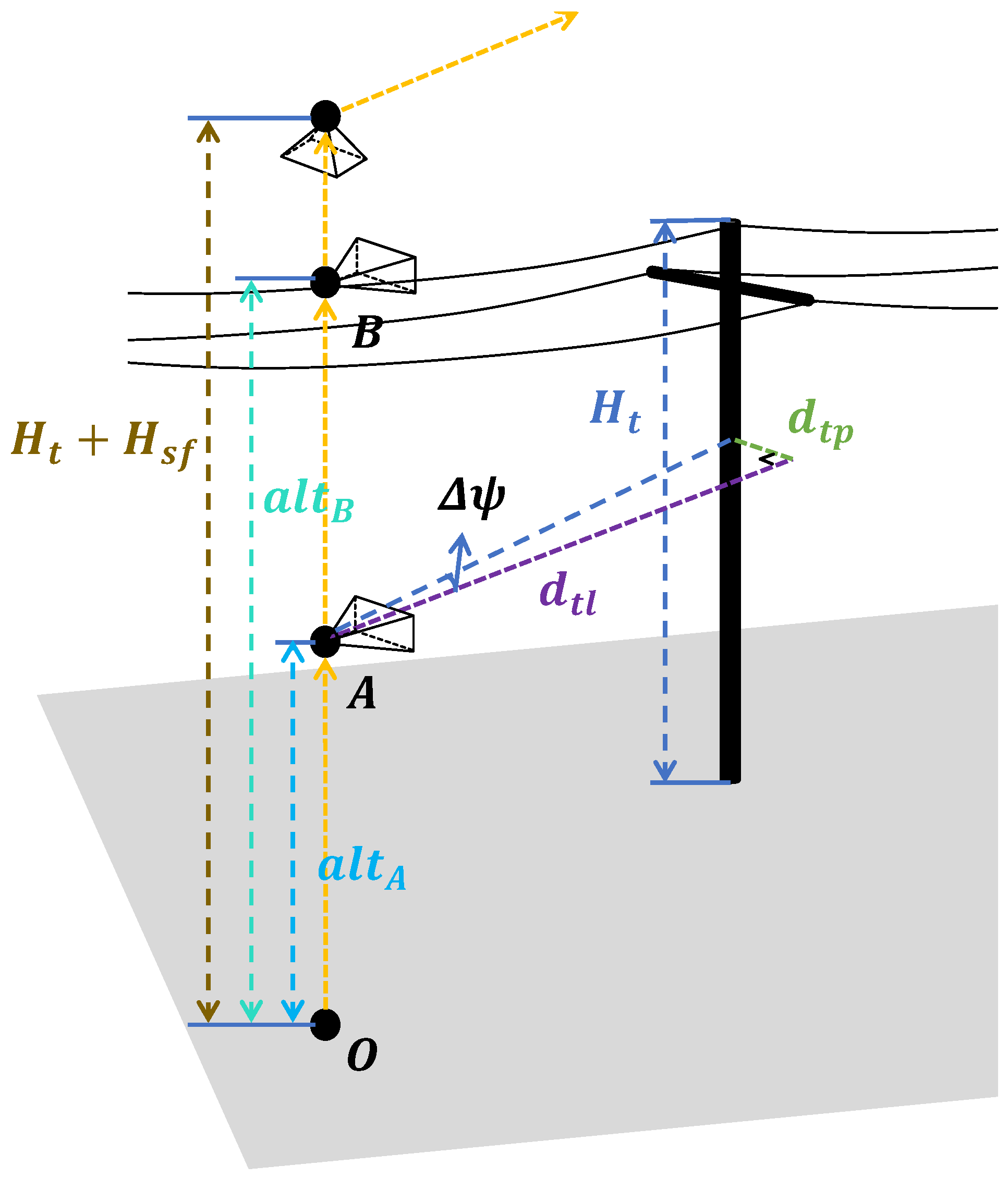 - Chen, D.-Q.; Guo, X.-H.; Huang, P.; Li, F.-H. Safety distance analysis of 500 kv transmission line tower uav patrol inspection. IEEE Lett. Electromagn. Compat. Pract. Appl. 2020, 2, 124–128. [Google Scholar] [CrossRef]