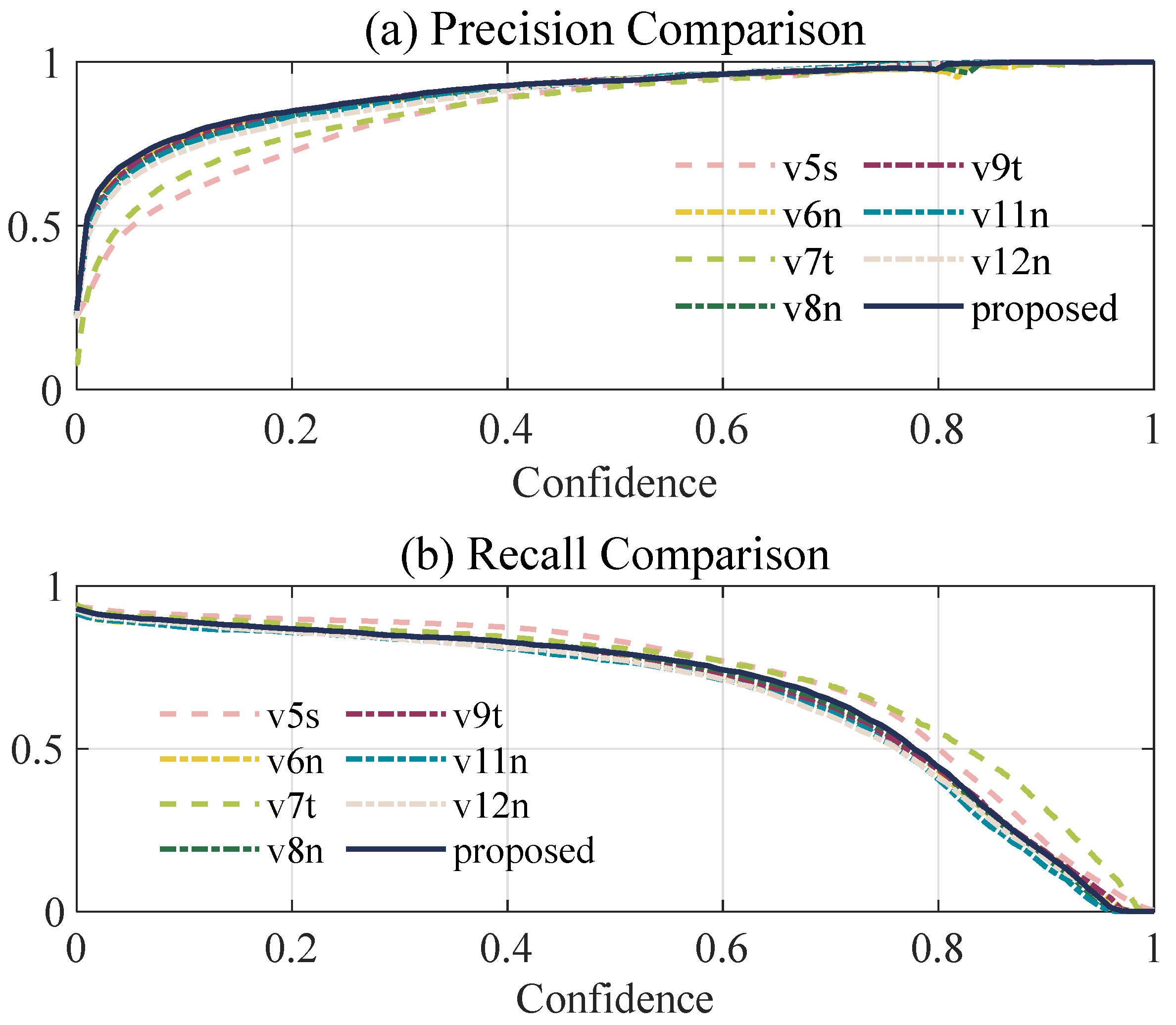 - Wang, C.-Y.; Yeh, I.-H.; Liao, H.-Y.M. Yolov9: Learning what you want to learn using programmable gradient information. In Proceedings of the European Conference on Computer Vision, Milan, Italy, 29 September–4 October 2024; Springer: Berlin/Heidelberg, Germany, 2024; pp. 1–21. [Google Scholar]