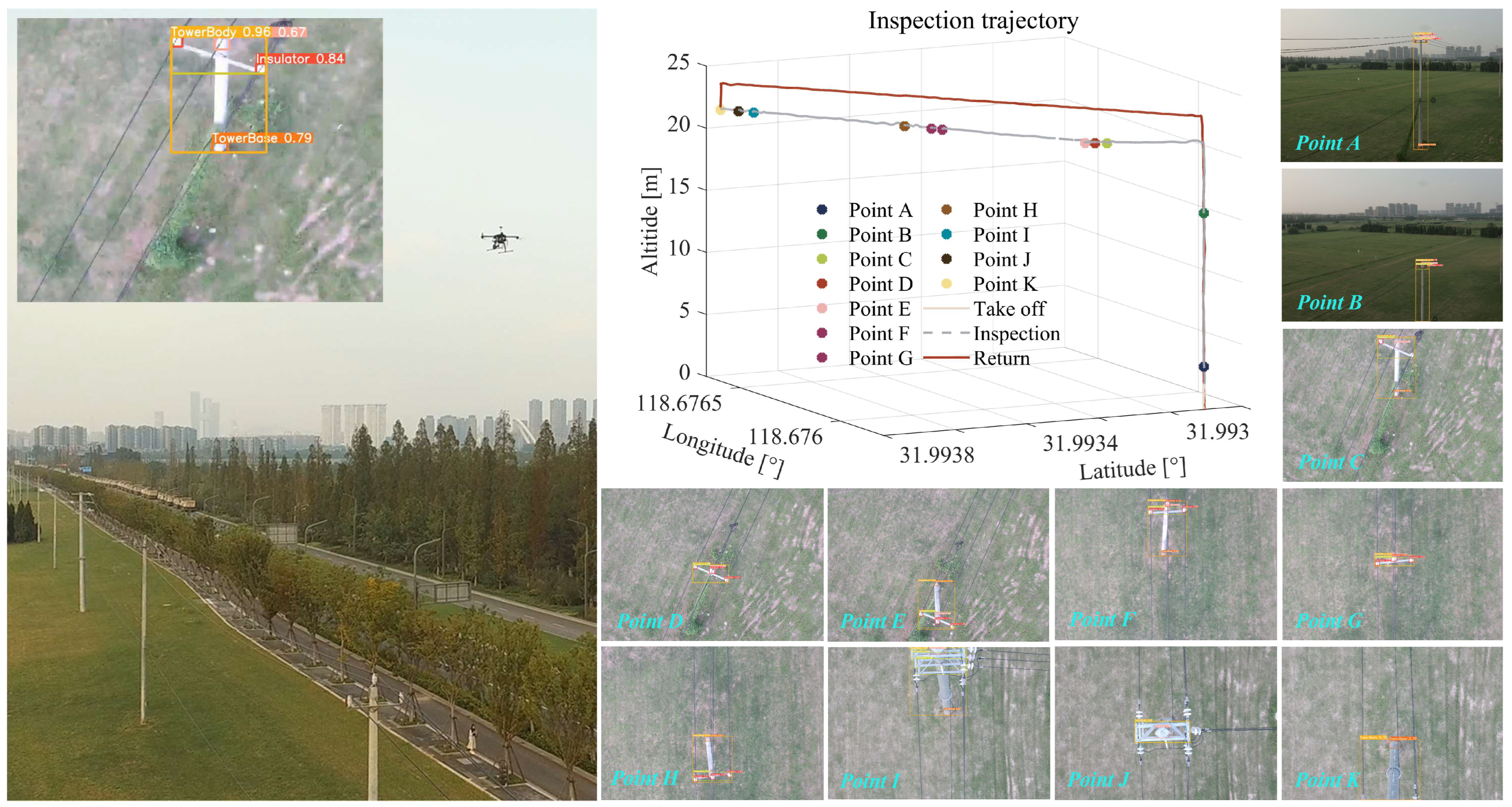 - Li, Z.; Wang, Q.; Zhang, T.; Ju, C.; Suzuki, S.; Namiki, A. UAV high-voltage power transmission line autonomous correction inspection system based on object detection. IEEE Sens. J. 2023, 23, 10215–10230. [Google Scholar] [CrossRef]