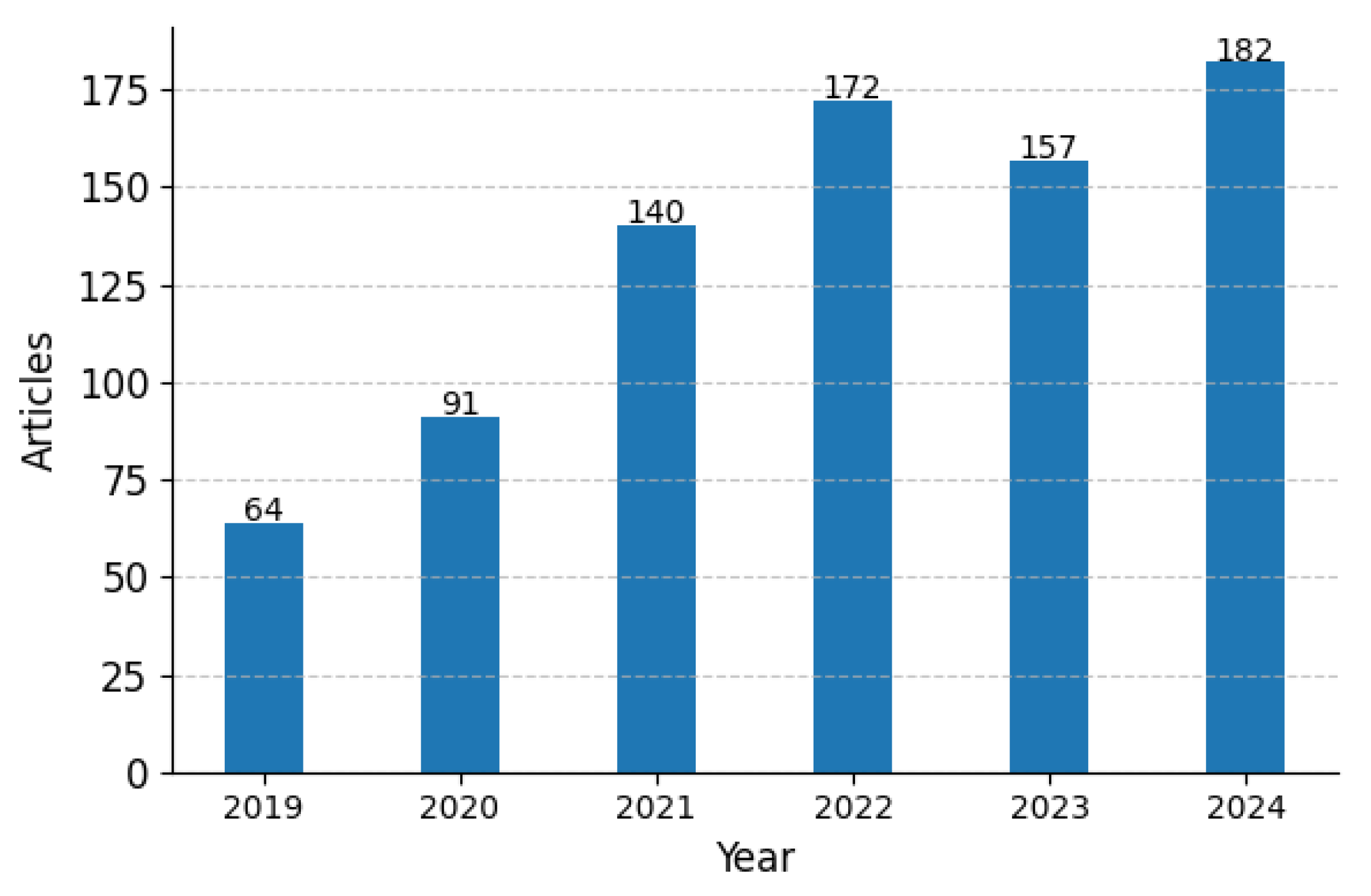 | Publication year | Published between 2019 and 2024 (inclusive). | Published before 2019 or after 2024. |