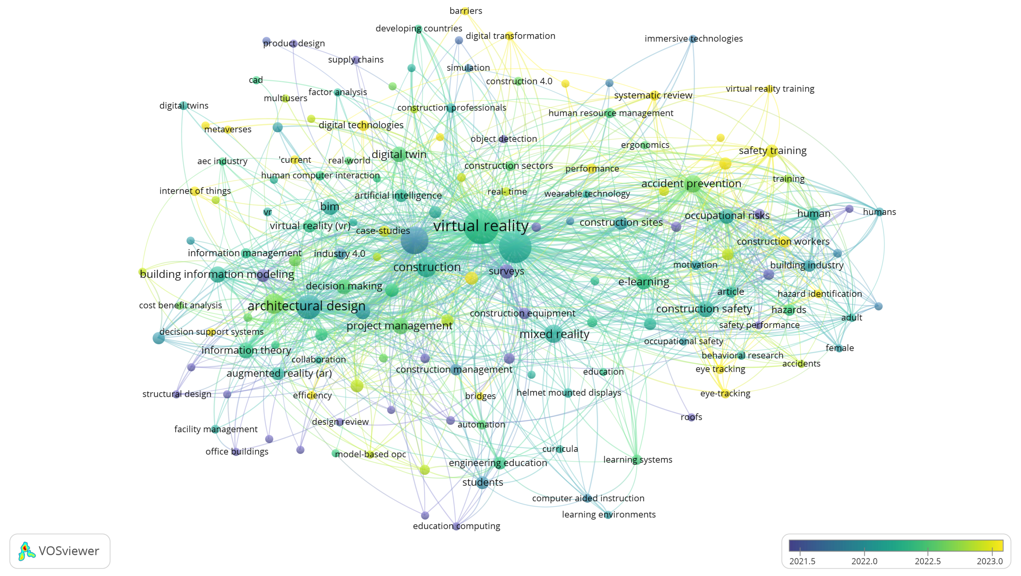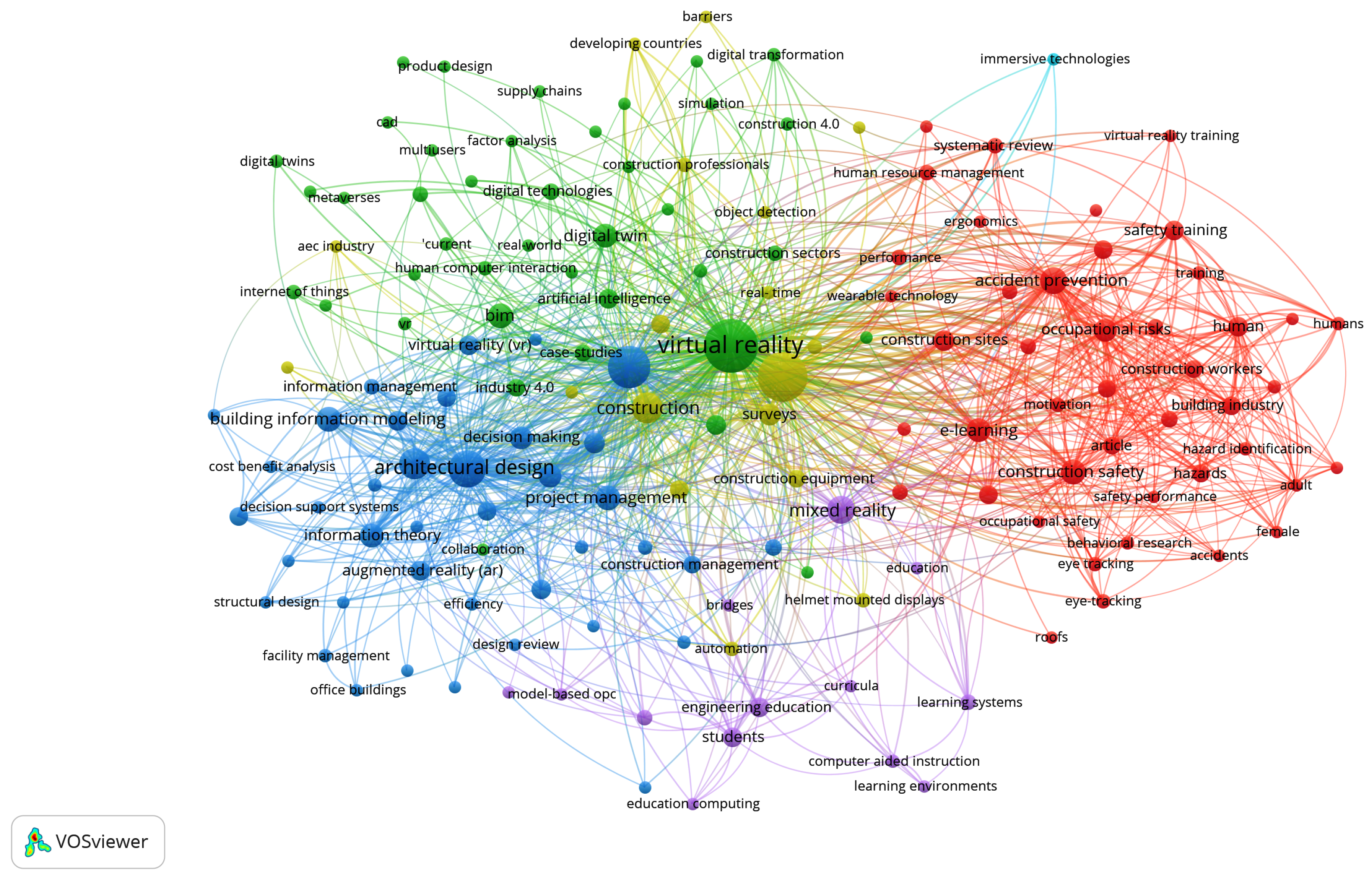 | Web of Science (n = 469) | TS = (Use of extended reality in the construction industry (Topic) AND Augmented Reality (OR – search within topic) AND Virtual Reality (OR – search within topic) AND Mixed Reality (OR – search within topic) AND English (Languages) AND Engineering (Research Areas) AND Article (Document Types) AND 2019–2024 (Publication Years), excluding 2025) |
