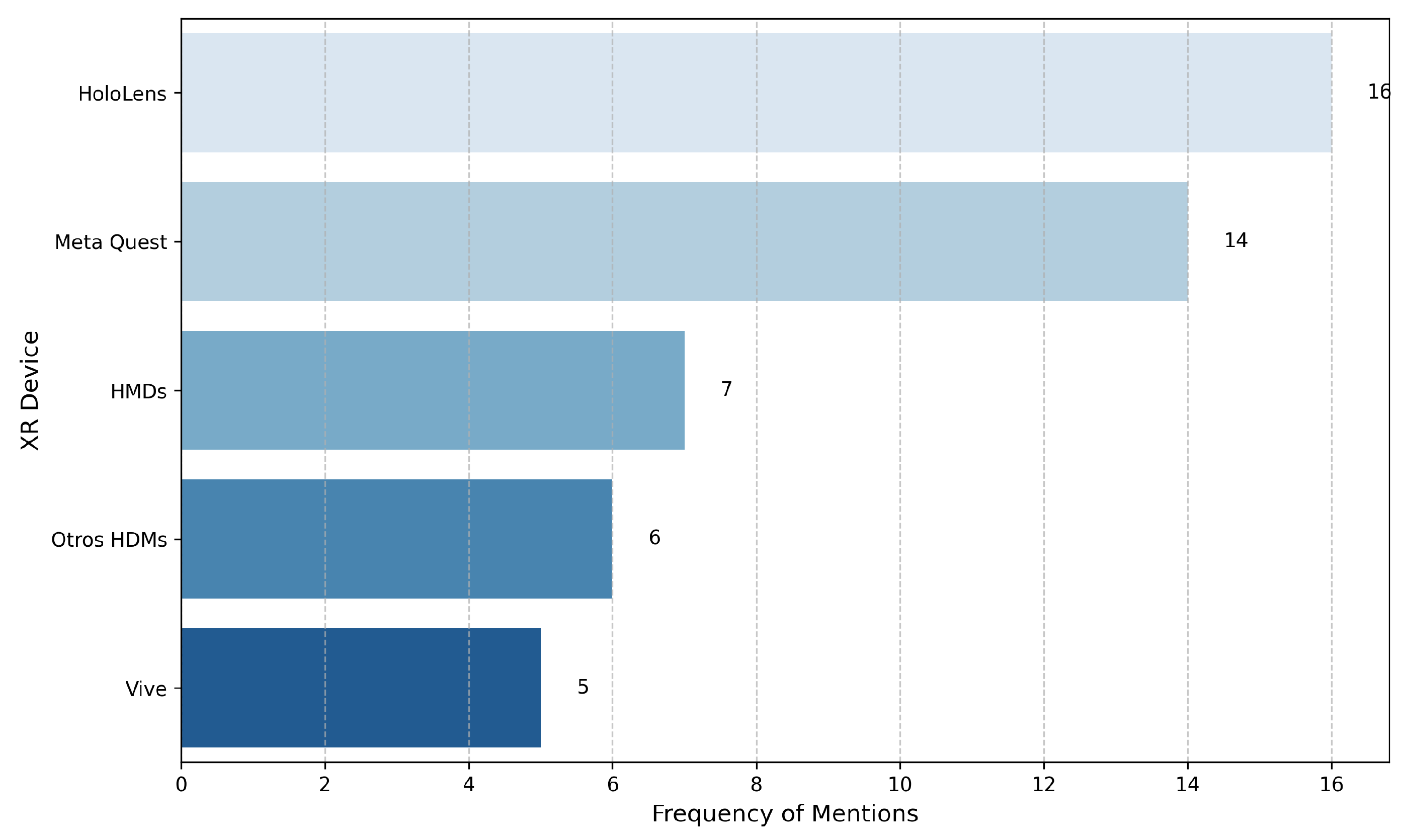 - RQ3: What devices and platforms are commonly adopted for XR implementation?