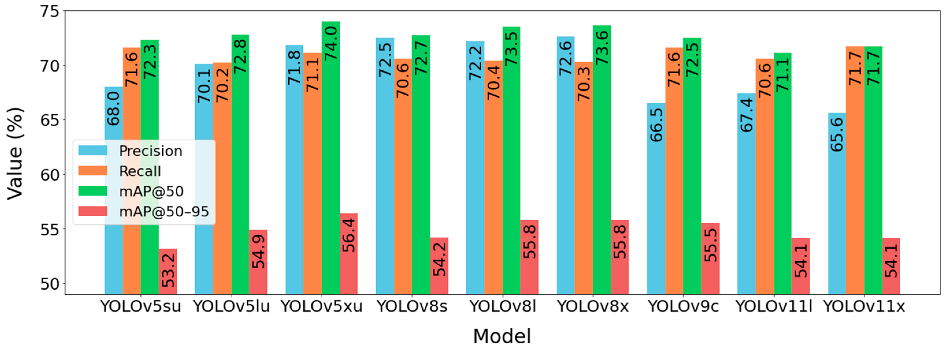 | YOLOv11 | n | 0.666 | 0.665 | 0.692 | 0.510 |