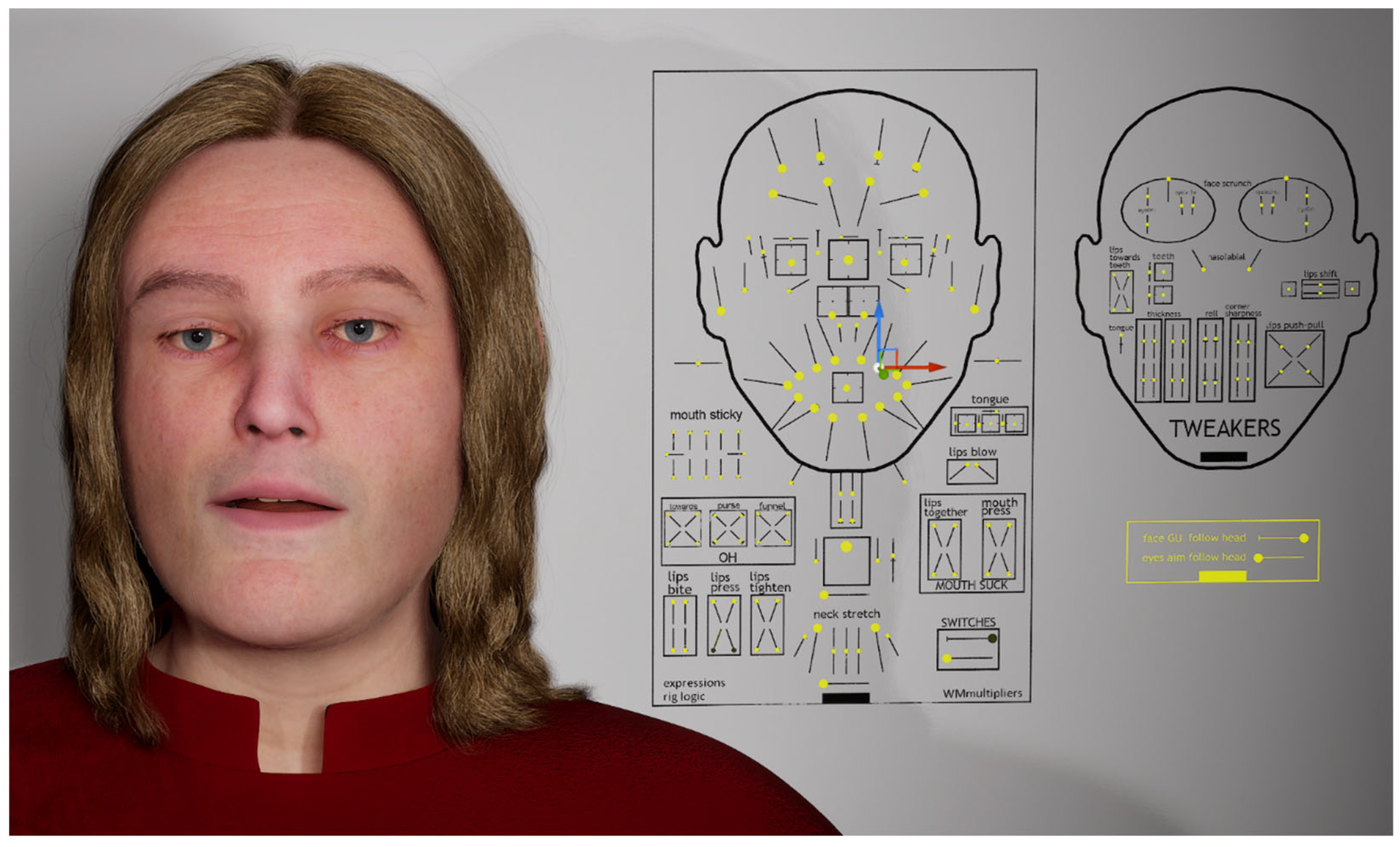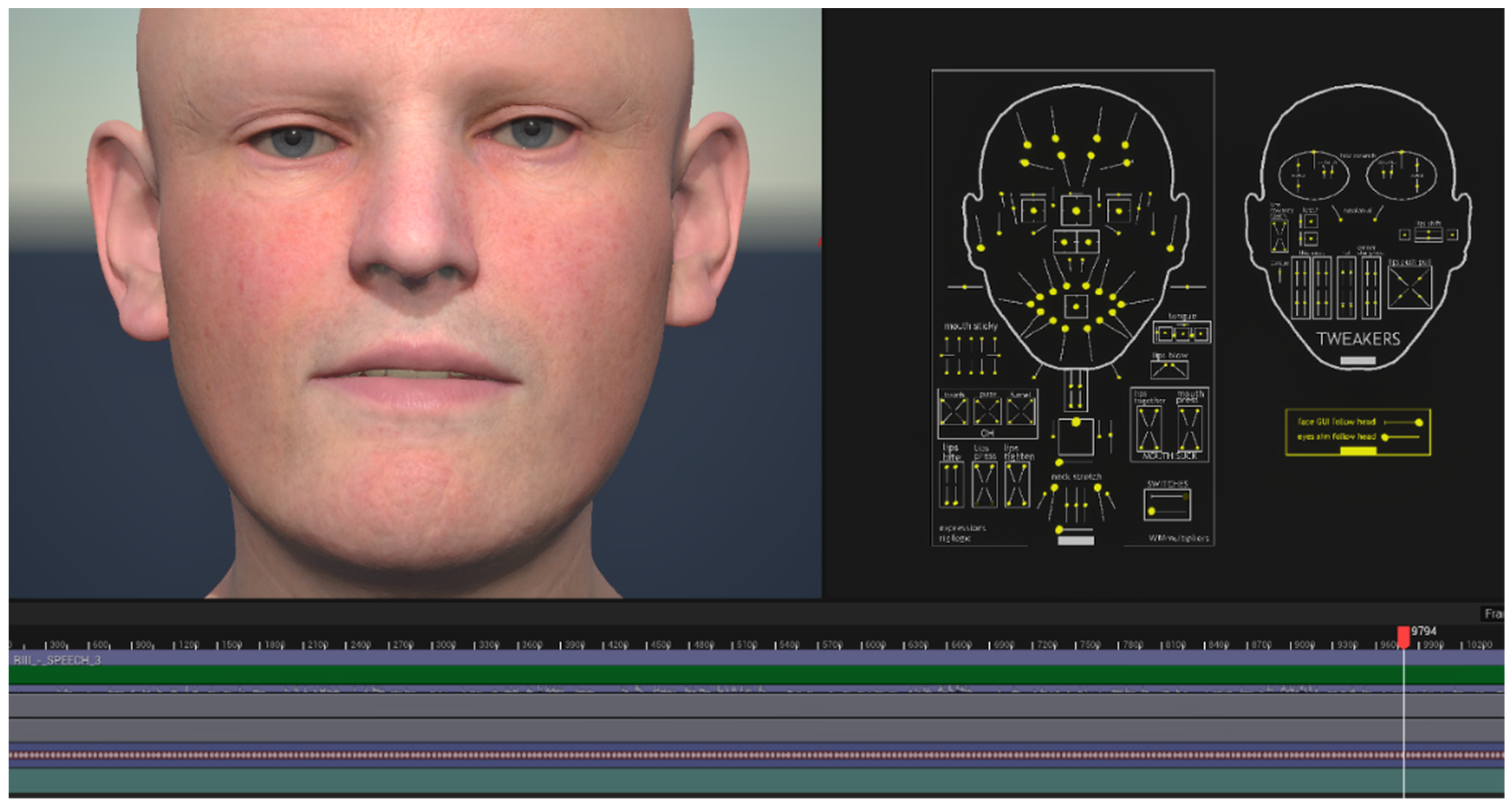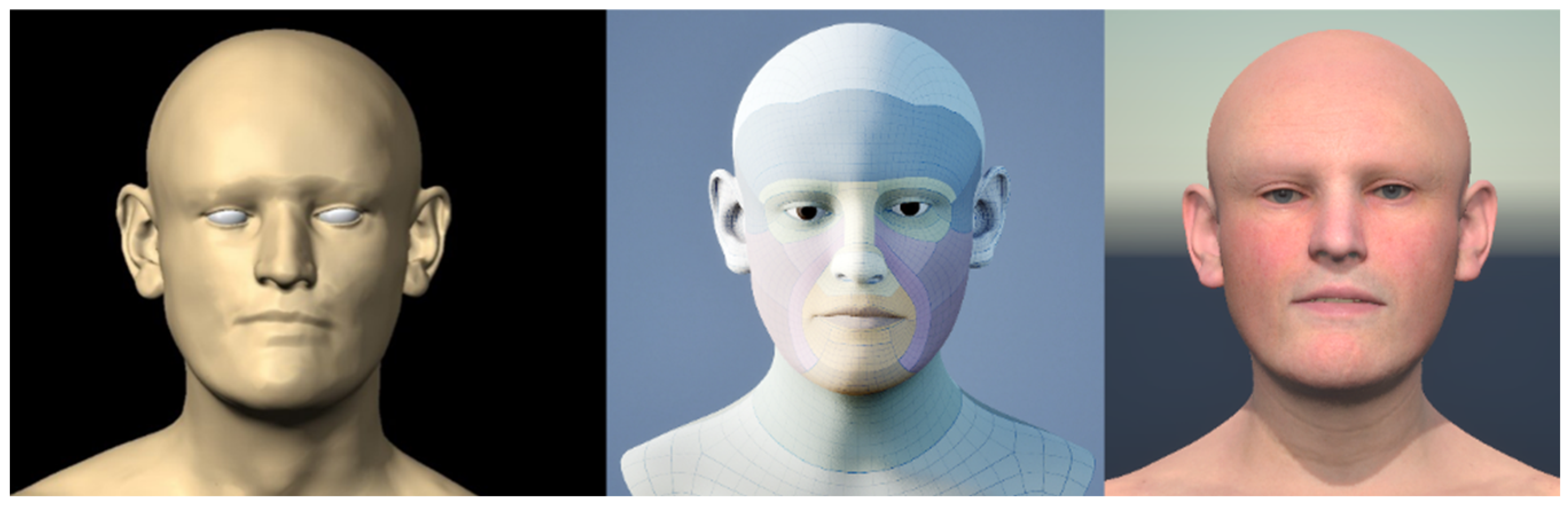 - Epic Games; MetaHuman. Head Blend Controls|MetaHuman Documentation|Epic Developer Community. 2025. Available online: https://dev.epicgames.com/documentation/en-us/metahuman/head-blend-controls (accessed on 4 January 2026).