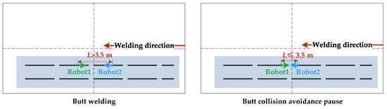 (2) The opposite-side interference constraint. To avoid operational interference between upper and lower welding robots on opposite-sides, if their distance along the x-axis is less than the safety distance , they must maintain the safety distance along the y-axis: