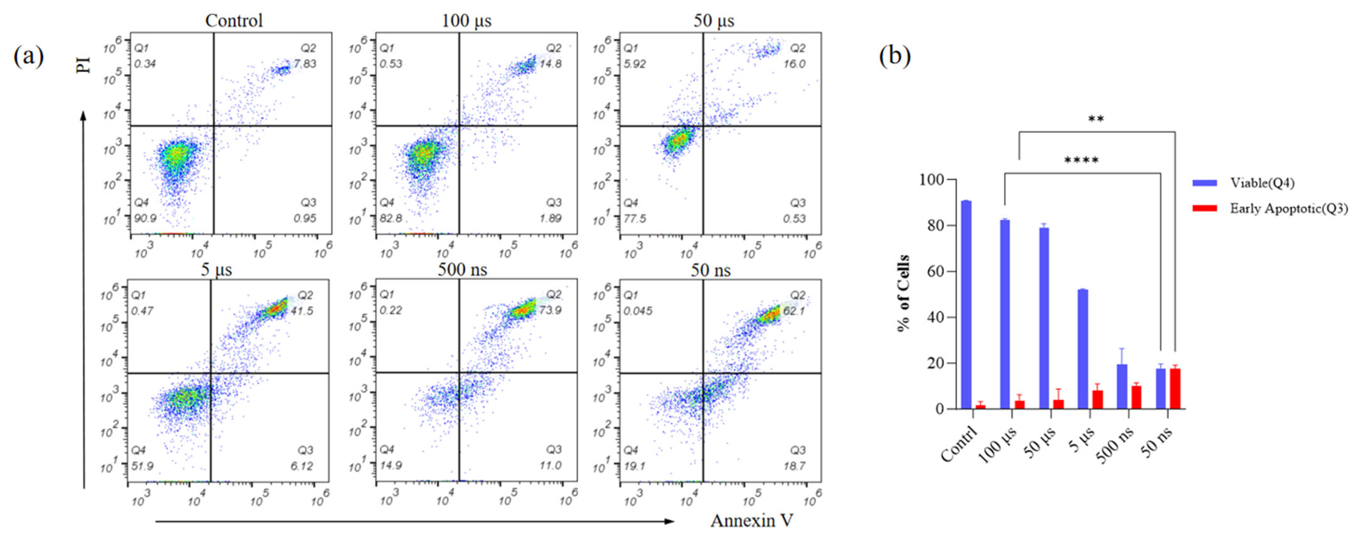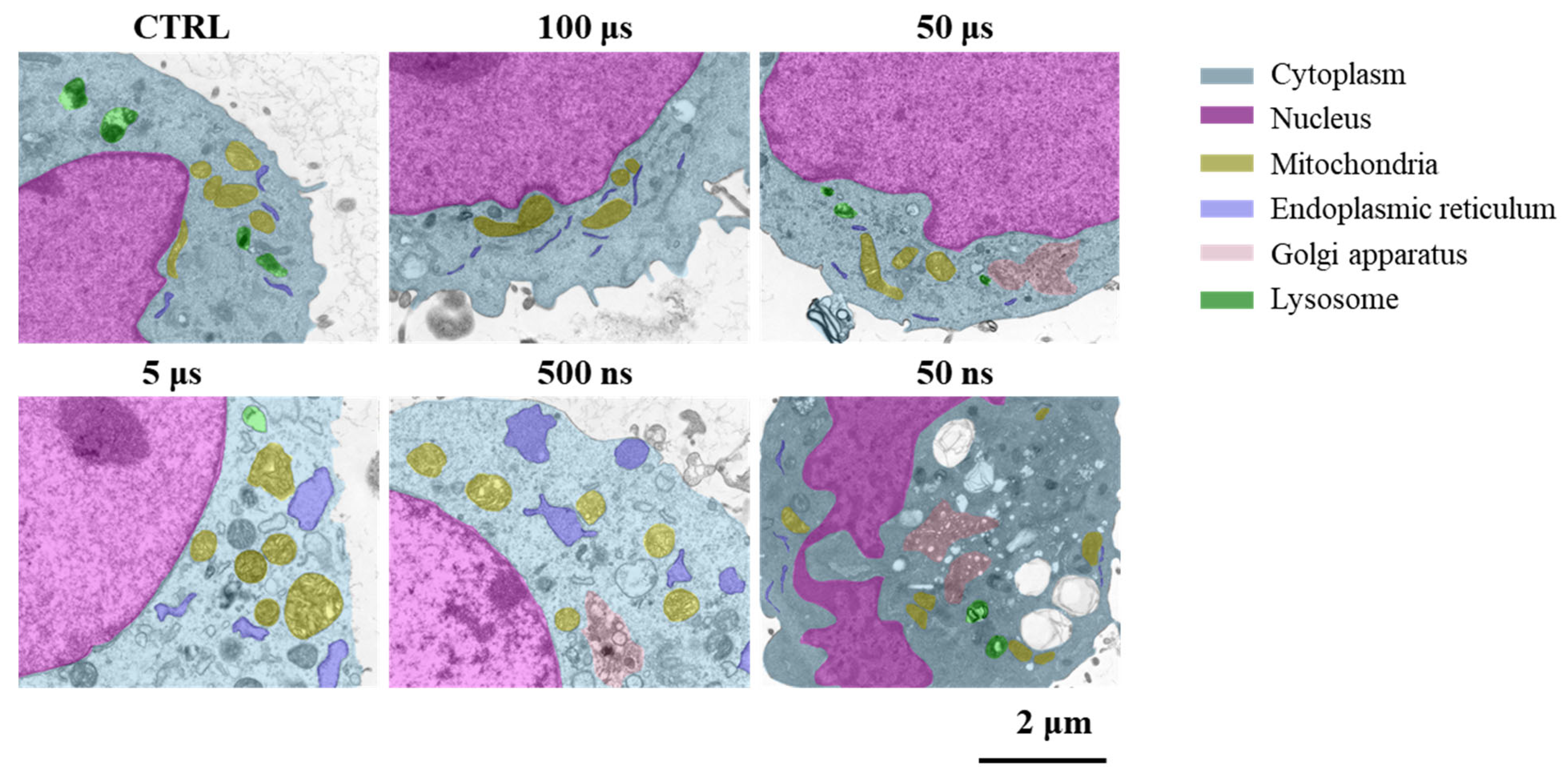 3.1. Ultrastructural Changes Under Different Pulse Widths