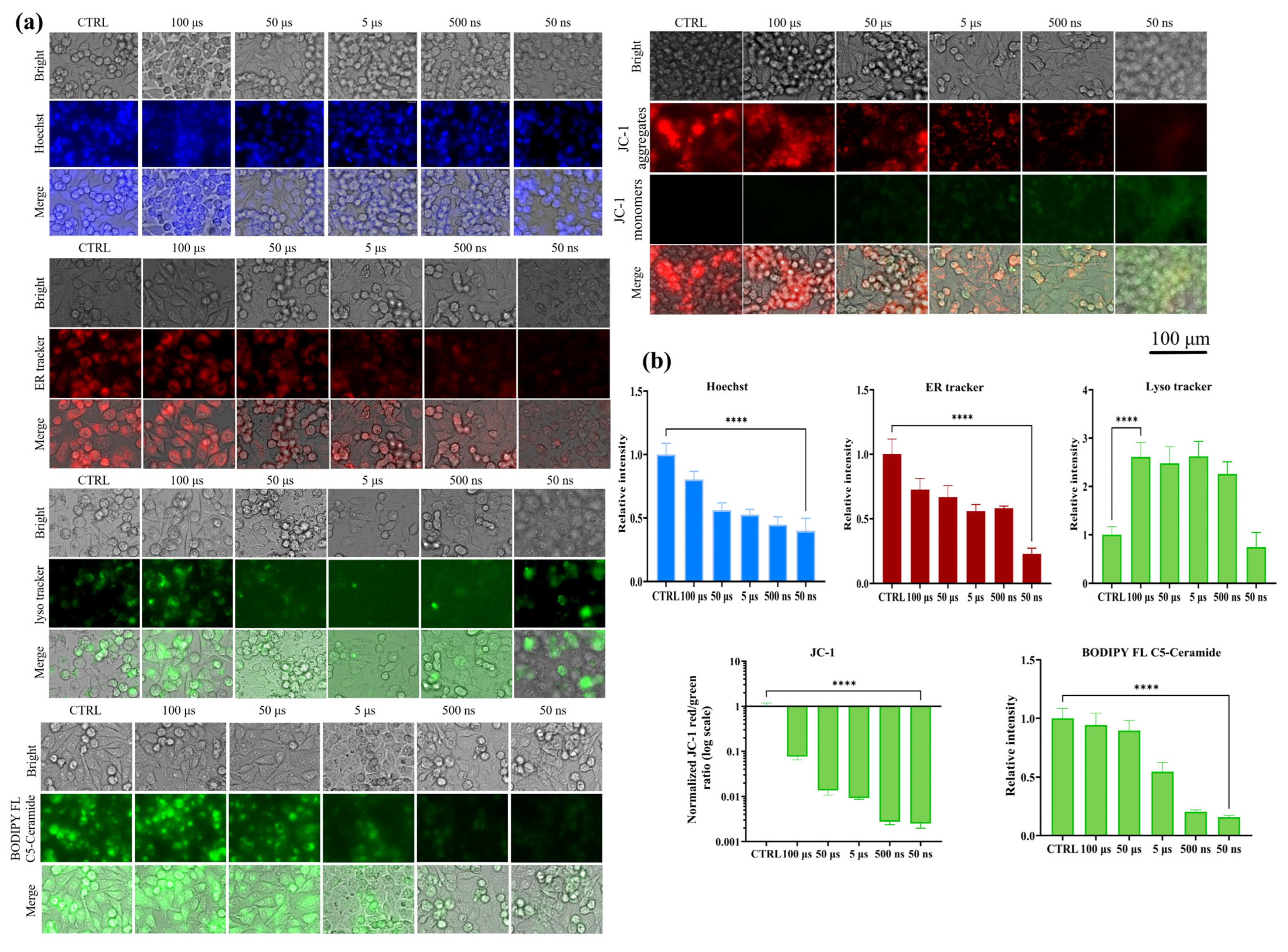 3.2. Fluorescence Responses of Major Organelles Under Different Pulse Widths