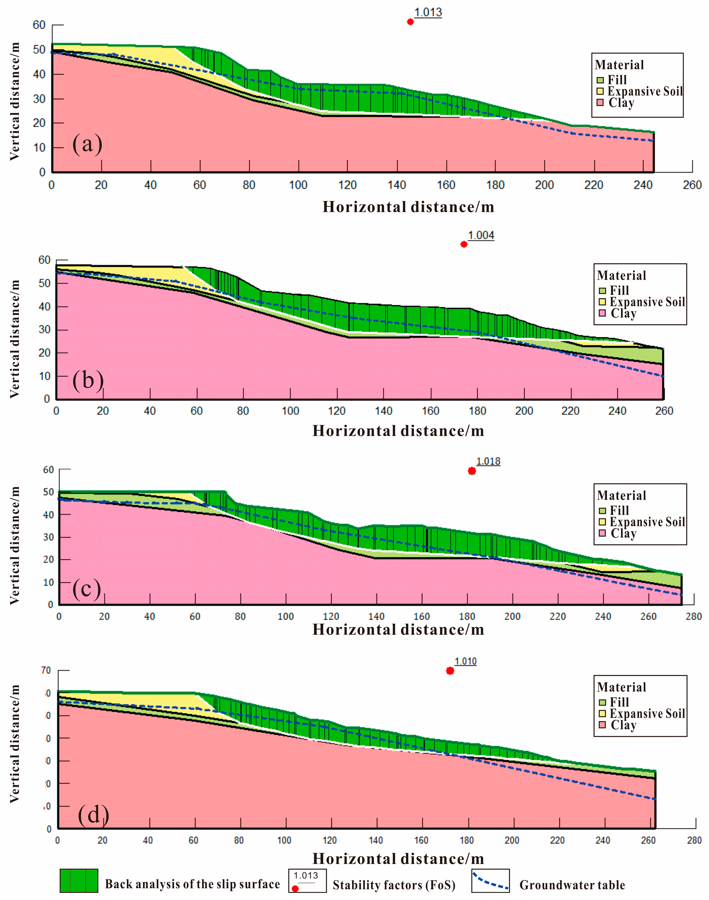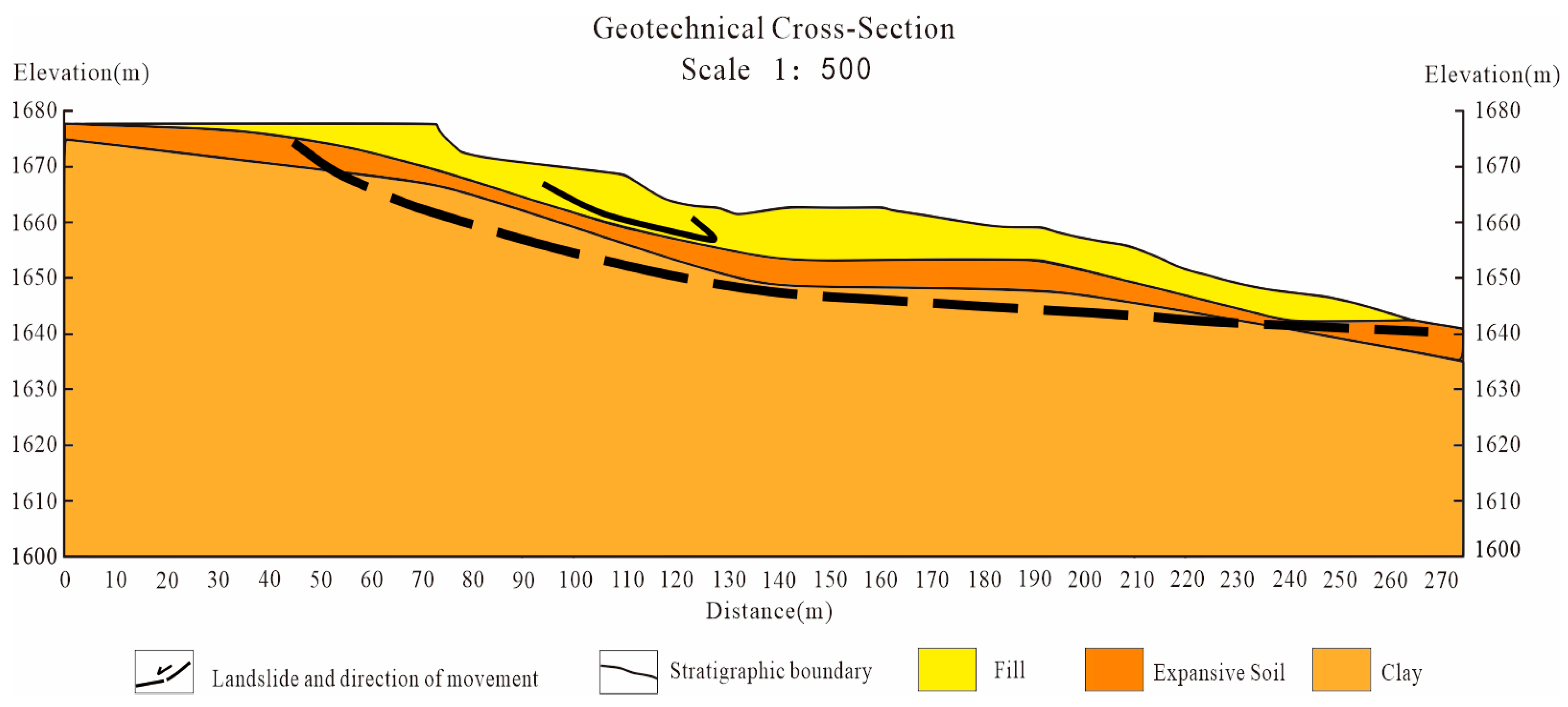 - Li, J.P.; Wang, L.; Wang, J.; Chen, Y.; Xu, Y.F. Stability analysis of expansive soil slopes considering shear strength attenuation characteristics. Chin. J. Geol. Hazard Control 2022, 33, 29–36. [Google Scholar] [CrossRef]