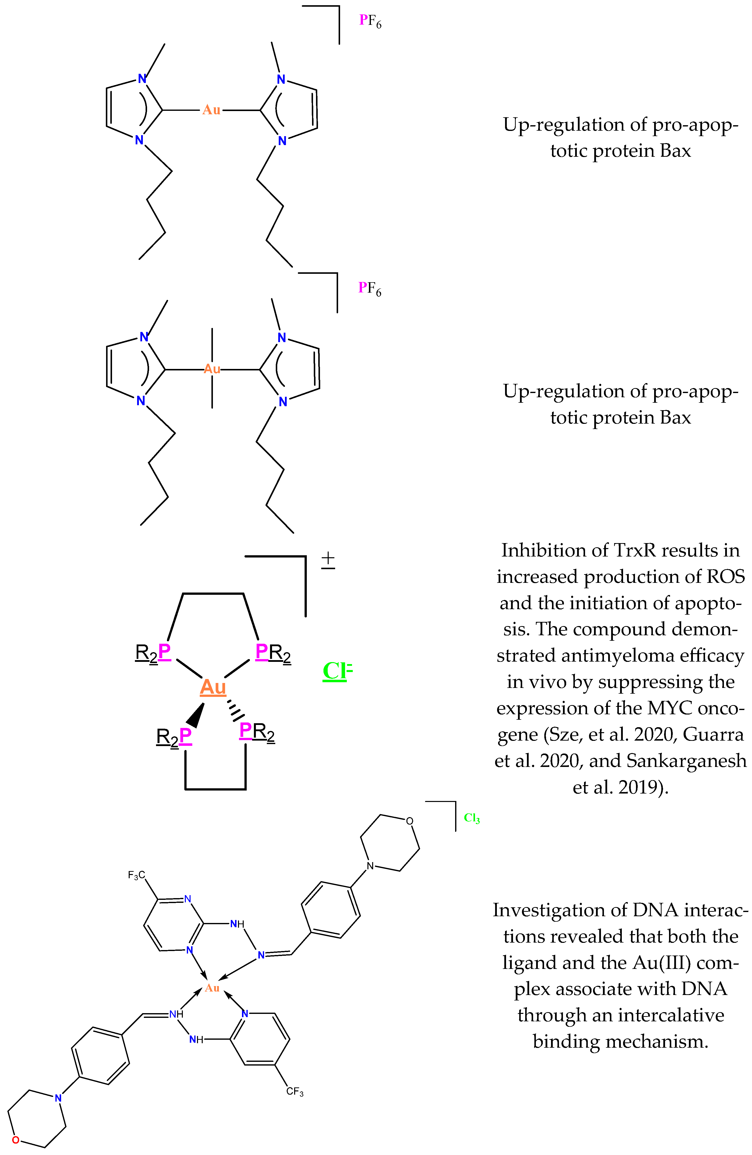 - Yeo, C.I.; Ooi, K.K.; Tiekink, E.R.T. Gold-Based Medicine: A Paradigm Shift in Anti-Cancer Therapy? Molecules 2018, 23, 1410. [Google Scholar] [CrossRef]