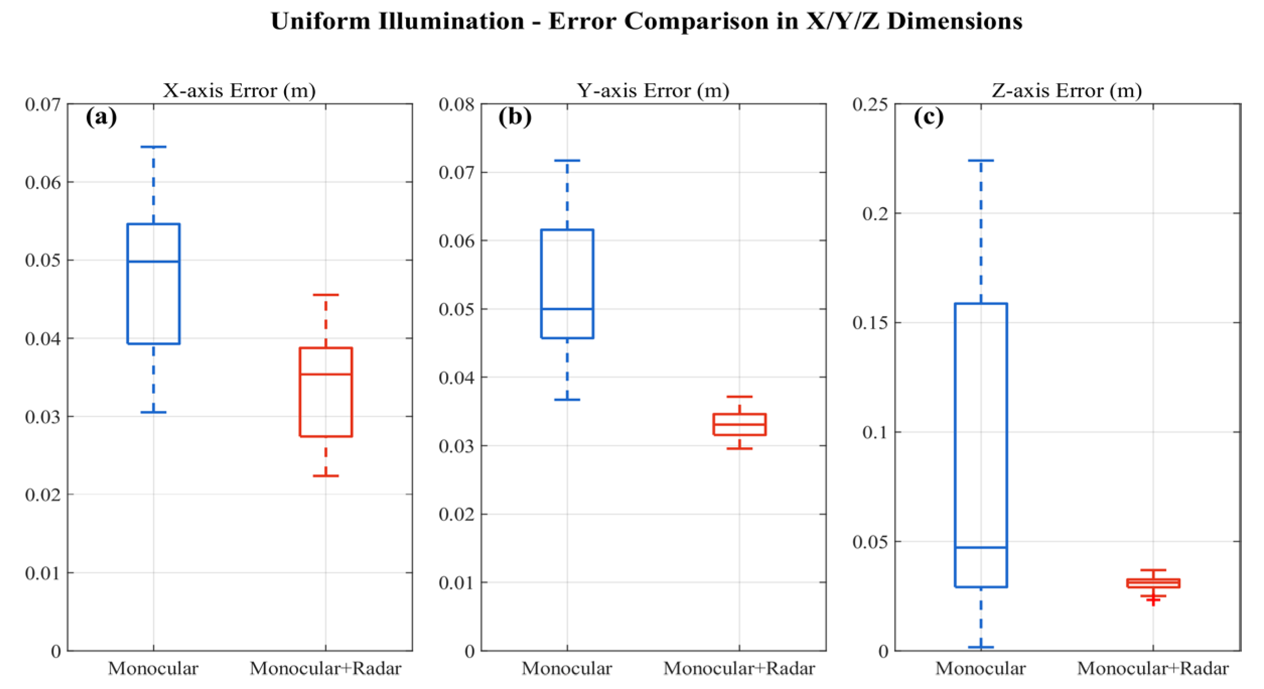 | Uniform Illumination | Monocular Vision | 0.0371 ± (0.0354,0.0388) | 0.0679 ± (0.0664,0.0695) | 0.2192 ± (0.2179,0.2206) |