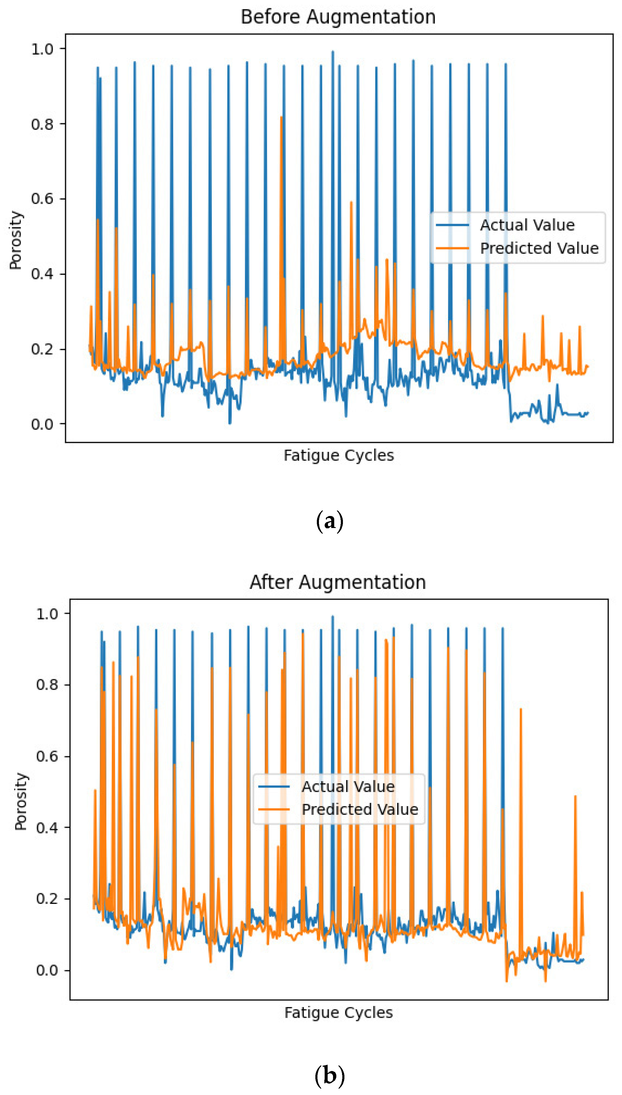 - A model of porosity and material fatigue cycles was established using LSTM neural network. By integrating this model with the previously determined porosity–ultrasonic attenuation coefficient relationship, fatigue life prediction of 3D-printed CFRPs can be achieved directly from ultrasonic attenuation coefficients.