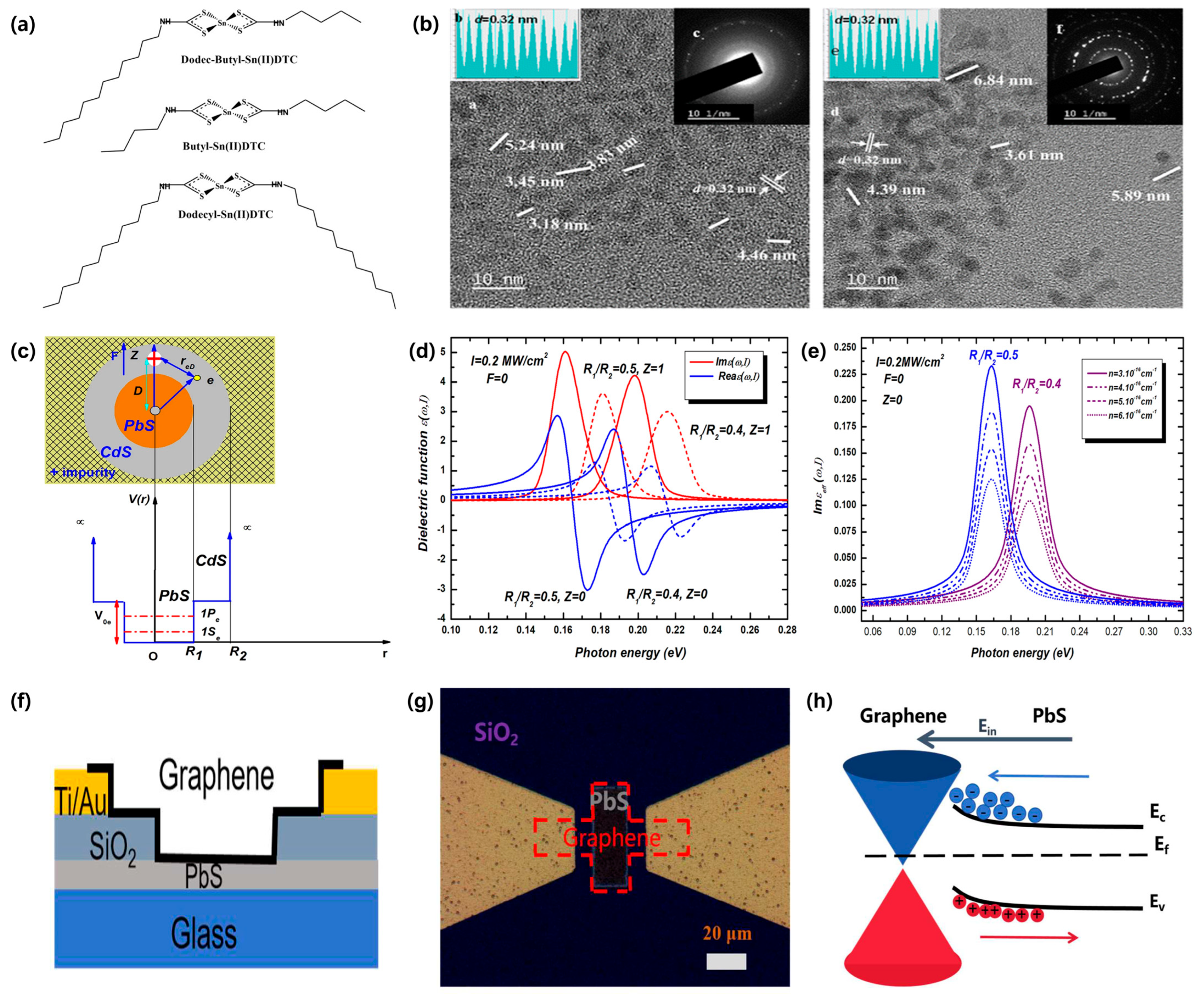 - Mu, X.; Su, J.; Zhou, W.; Chang, P.; Deng, J.; Liu, Y.; Ma, Z.; Xie, Y. Broadband Graphene-PbS Heterostructure Photodetector with High Responsivity. Nanomaterials 2025, 15, 207. [Google Scholar] [CrossRef]