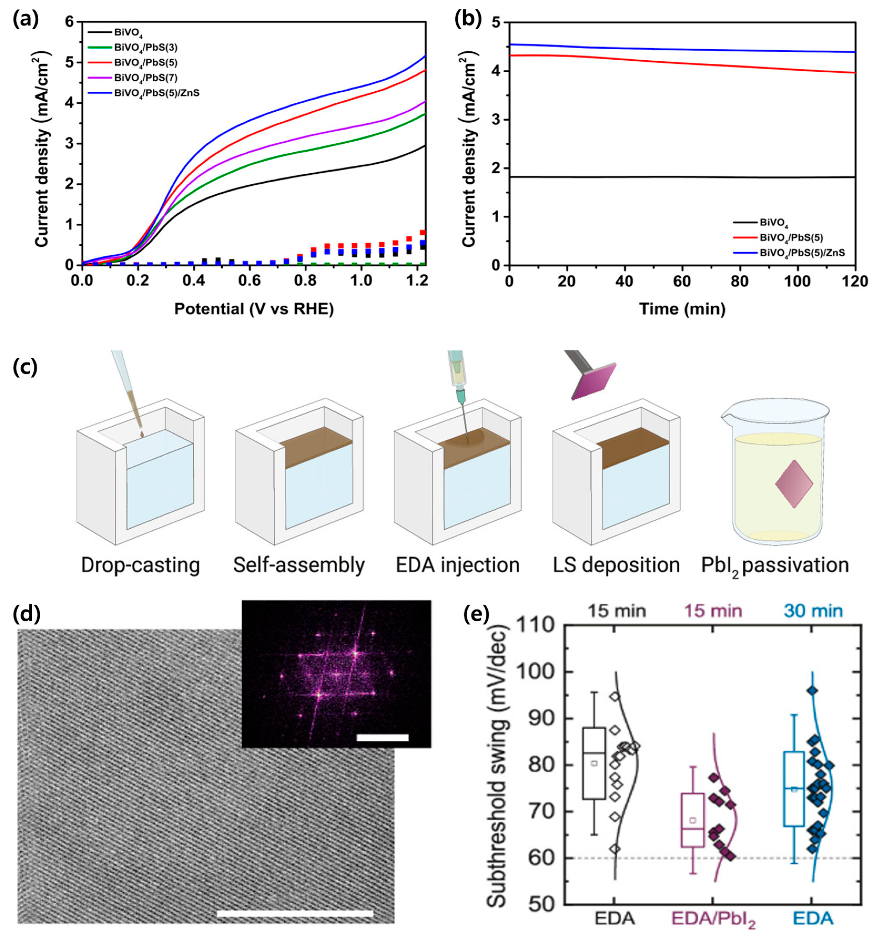 - Seo, J.-W.; Ha, S.-B.; Song, I.-C.; Kim, J.-Y. PbS Quantum Dots-Decorated BiVO4 Photoanodes for Highly Efficient Photoelectrochemical Hydrogen Production. Nanomaterials 2023, 13, 799. [Google Scholar] [CrossRef]