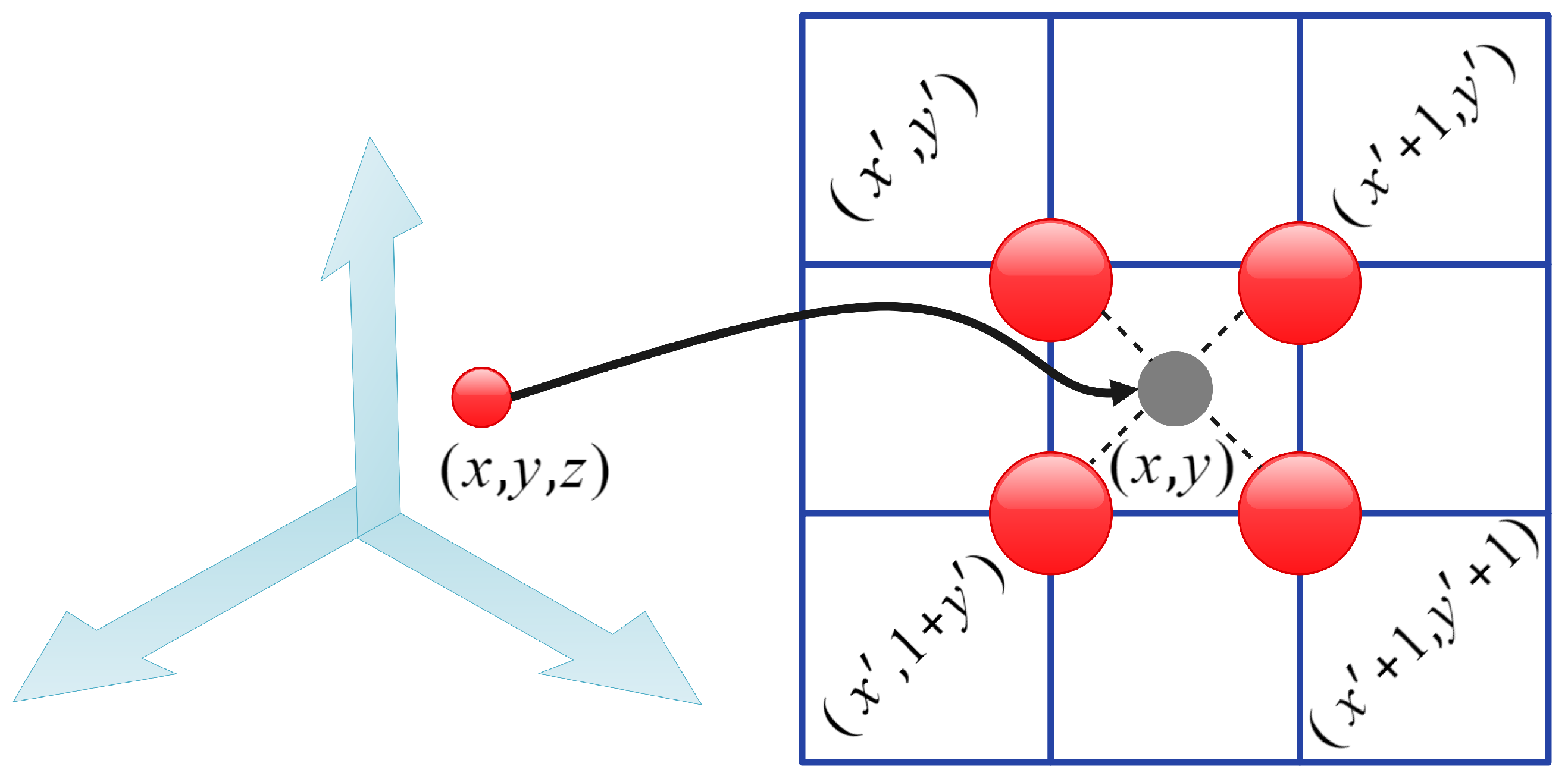 denotes the 2D feature at grid position