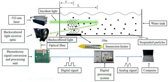 Underwater target detection technology plays a critical role in both defense and civilian sectors, including seabed geological exploration, underwater obstacle avoidance and navigation, and the localization and search of submerged objects [1]. Underwater laser detection technology uses lasers at specific wavelengths, like the blue-green band (typically 532 nm), which lies within seawater’s “optical window,” to effectively enhance light penetration in water [2]. This not only ensures detection performance but also significantly improves the ability to identify and locate faint targets. Underwater laser detection systems, such as Light Detection and Ranging (LiDAR), actively emit coherent laser beams characterized by high energy, narrow pulse width, and high directivity. This enables effective detection, identification, and precise localization of faint underwater targets, even in complex water conditions and under background light interference. Its detection targets encompass a wide range of objects, including wreck components, naval mines, pipelines, small organisms, and air bubbles [3,4]. Given this diversity, the technology has emerged as a key solution for achieving high-accuracy and efficient detection of faint targets in complex marine environments. The propagation of optical signals in water is significantly degraded by various coupled interference factors, such as scattering, absorption, air bubbles, and turbulence. Underwater turbulence is an irregular, unsteady, three-dimensional, and multi-scale flow found in oceans, lakes, and other aquatic environments. It arises from velocity gradients, temperature differences, non-uniform salinity distribution, and external disturbances such as wind waves and current shear. This phenomenon is characterized by spatiotemporal random fluctuations in flow velocity, which induce intense mixing within the water body and enable an energy cascade [5]. When a laser propagates through such a turbulent medium, inhomogeneities in water’s refractive index give rise to a series of adverse effects, including phase fluctuations, intensity scintillation, and beam wander. Collectively, these effects impair the performance of underwater LiDAR detection systems [6].