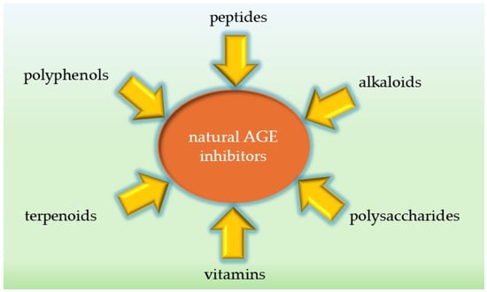 - Song, Q.; Liu, J.; Dong, L.; Wang, X.; Zhang, X. Novel advances in inhibiting advanced glycation end product formation using natural compounds. Biomed. Pharmacother. 2021, 140, 111750. [Google Scholar] [CrossRef] [PubMed]