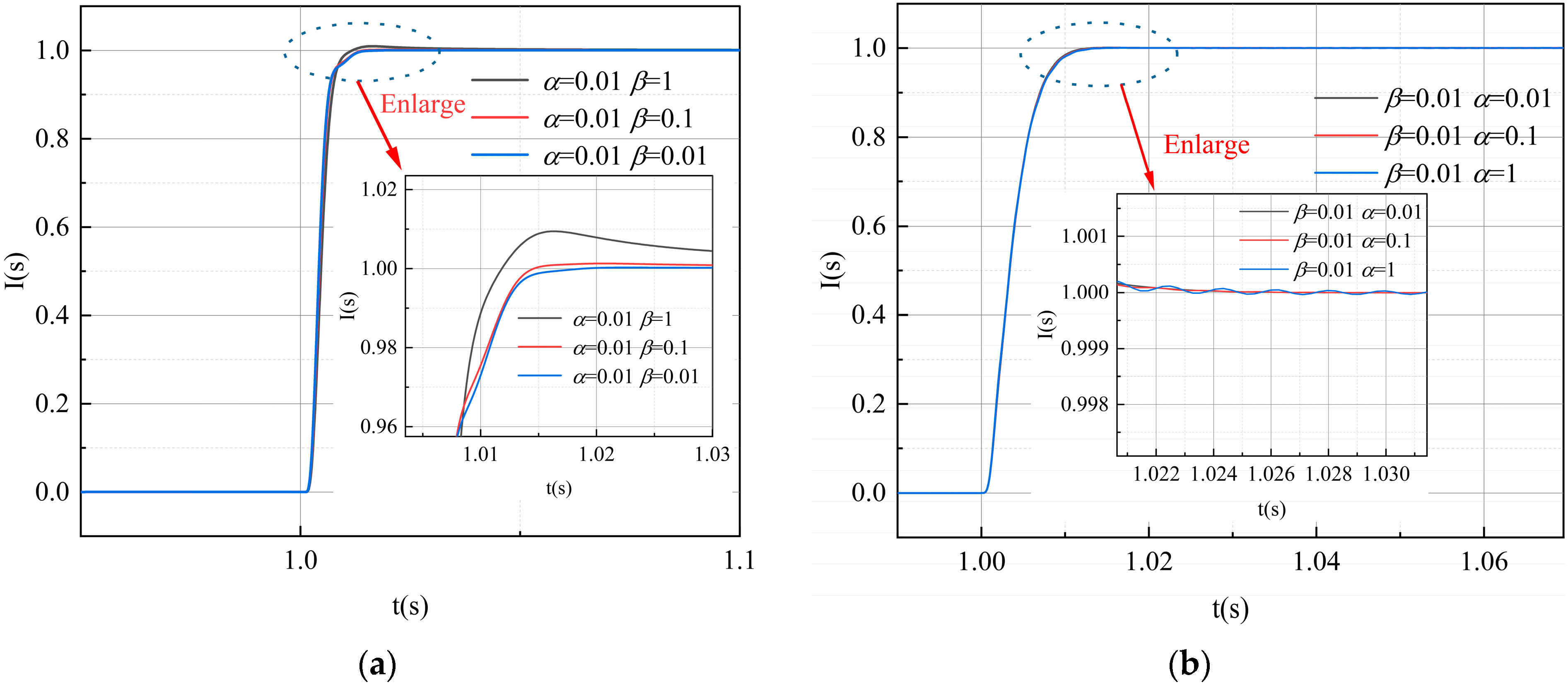 β are similar, and too large of an α may lead to the degradation of the dynamic performance of the system. Meanwhile, in practical systems, the selection ranges of the parameters