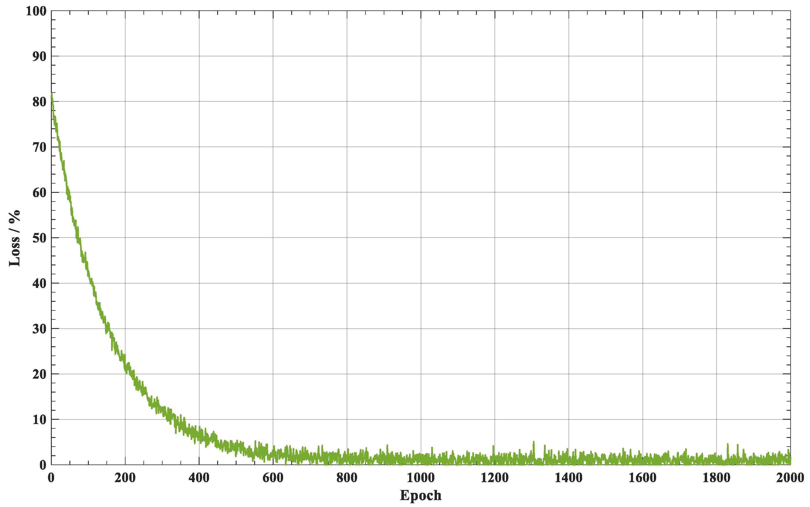 The stability of the model training process is fundamental for ensuring reliable algorithm performance. To evaluate the convergence of the proposed algorithm, this simulation set the maximum number of training epochs to 1000, the batch size to 64, the dropout rate to 0.3, and the initial learning rate to 10