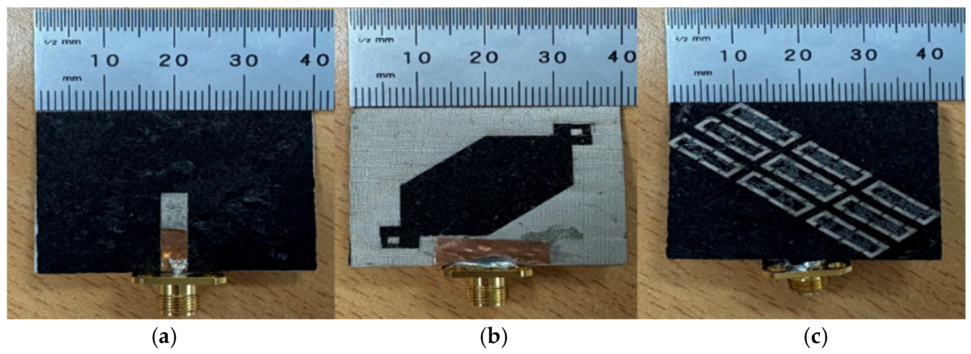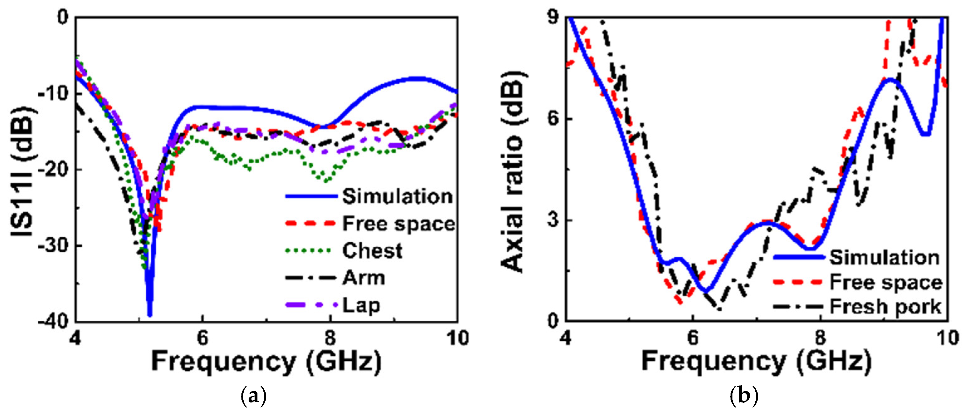 - Kim, Y.-D.; Le, T.T.; Yun, T.-Y. An enhanced circularly polarized textile antenna using a metasurface and slot-patterned ground for off-body communications. Micromachines 2025, 16, 799. [Google Scholar] [CrossRef]