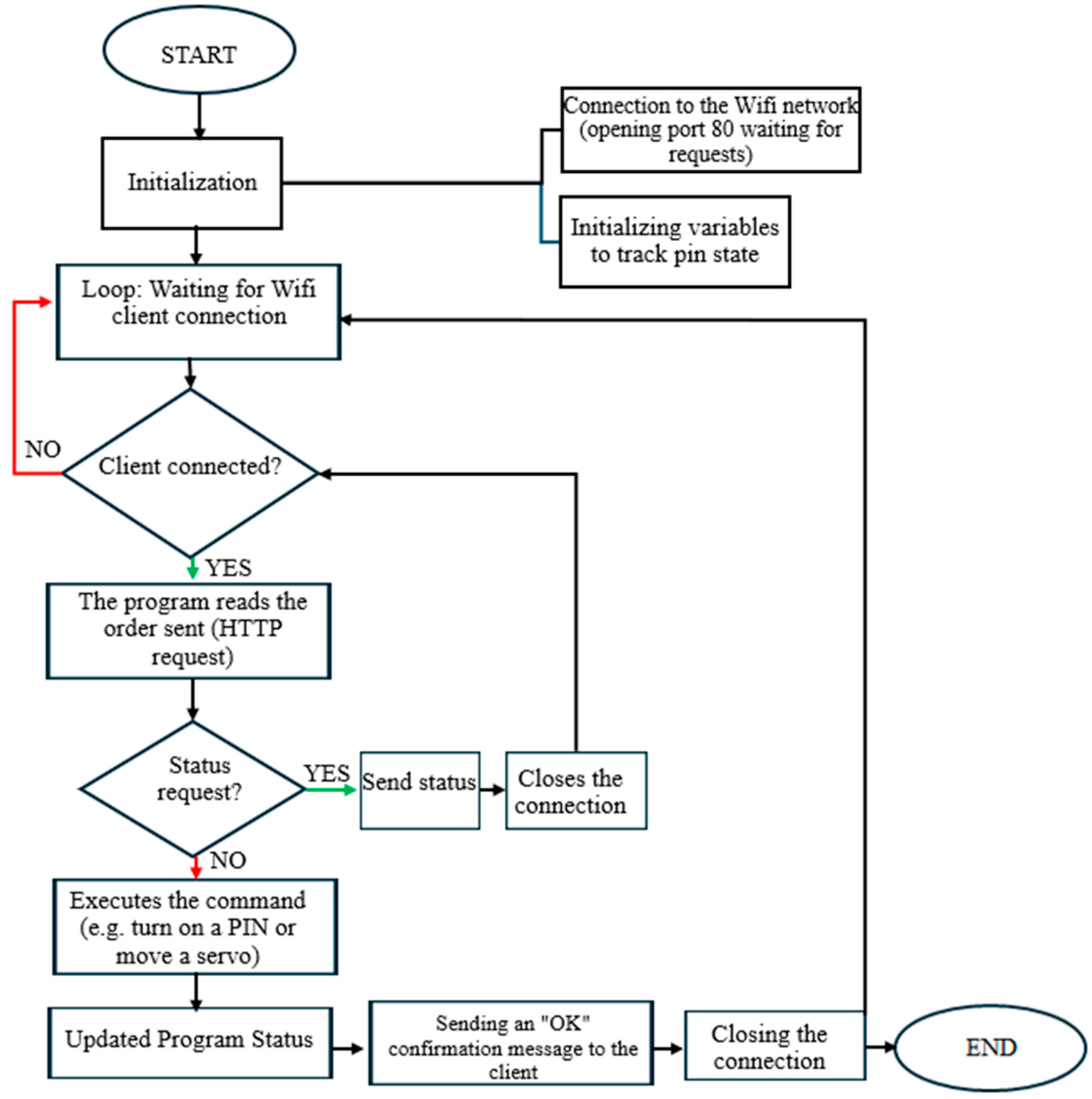 - Wi-Fi router: The router provides the local network needed for communication between the user interface and the control boards. All devices are collected in the network, allowing them to communicate via HTTP requests.