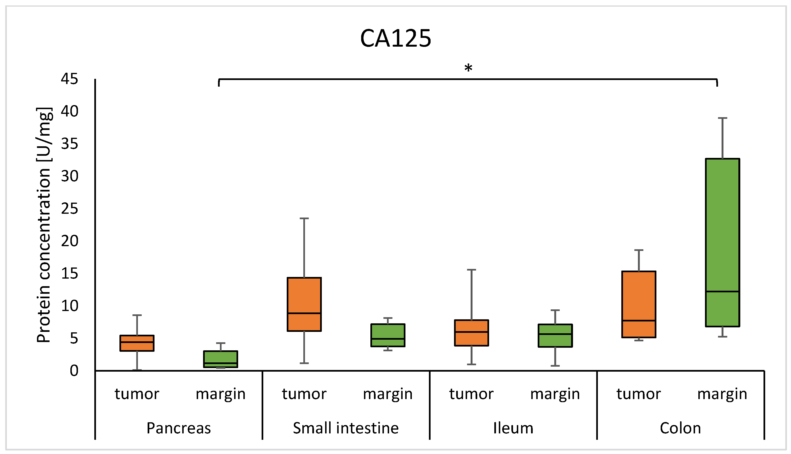 APA StyleŚwiętek, A., Strzelczyk, J. K., Hudy, D., Czuba, Z. P., Snopek-Miśta, K., Kryj, M., Kuśnierz, K., Mrowiec, S., Zeman, M., Roś-Mazurczyk, M., & Strzelczyk, J. (2026). Expression Profile of CEACAM-5, CA125 and HE4 Proteins in Tumor and Corresponding Margin Samples in a Group of Patients with Gastroenteropancreatic Neuroendocrine Tumors (GEP-NET). Applied Sciences, 16(2), 692. https://doi.org/10.3390/app16020692