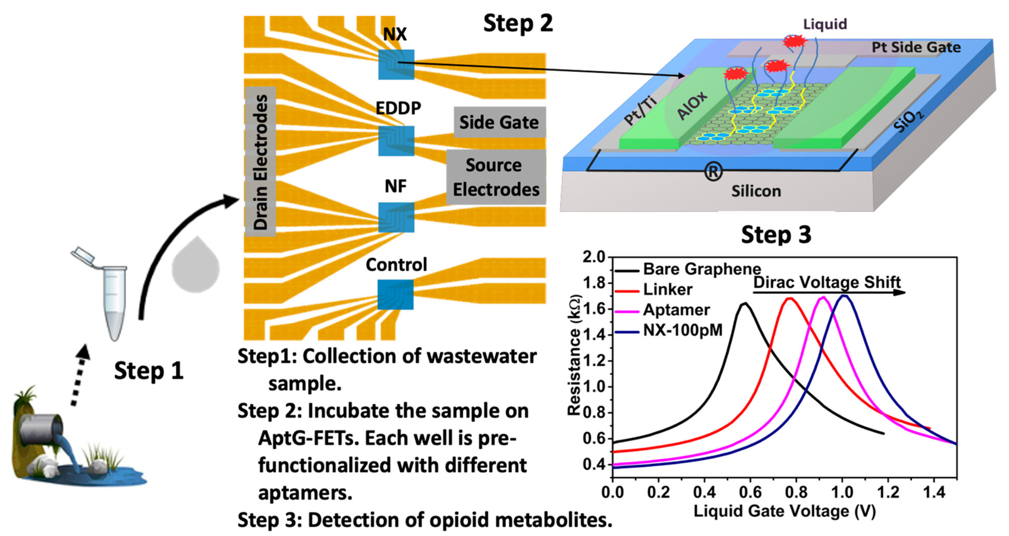 - Kumar, N.; Rana, M.; Geiwitz, M.; Khan, N.I.; Catalano, M.; Ortiz-Marquez, J.C.; Kitadai, H.; Weber, A.; Dweik, B.; Ling, X.; et al. Rapid, Multianalyte Detection of Opioid Metabolites in Wastewater. ACS Nano 2022, 16, 3704–3714. [Google Scholar] [CrossRef]