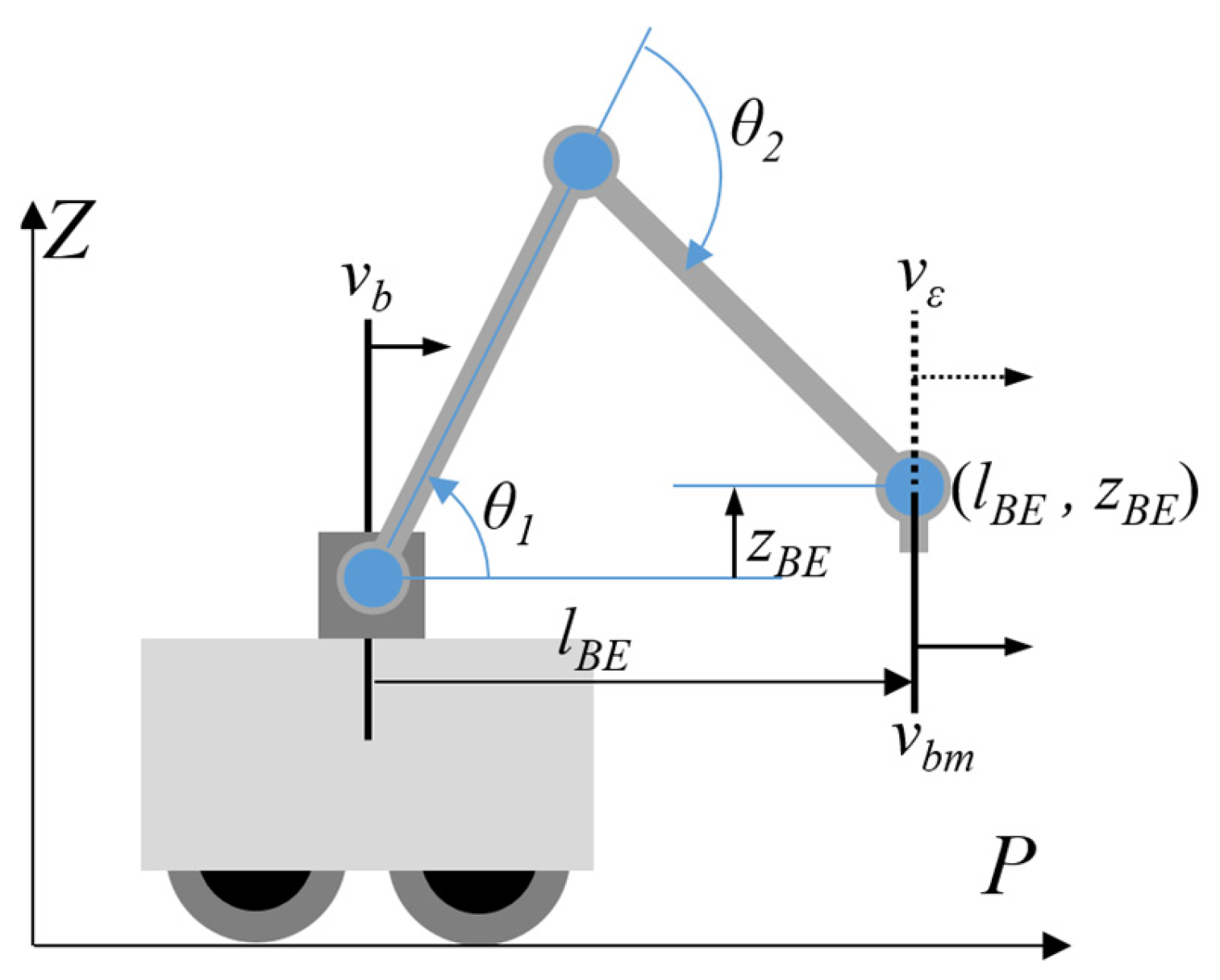 lBE represents the extended length of the manipulator, and