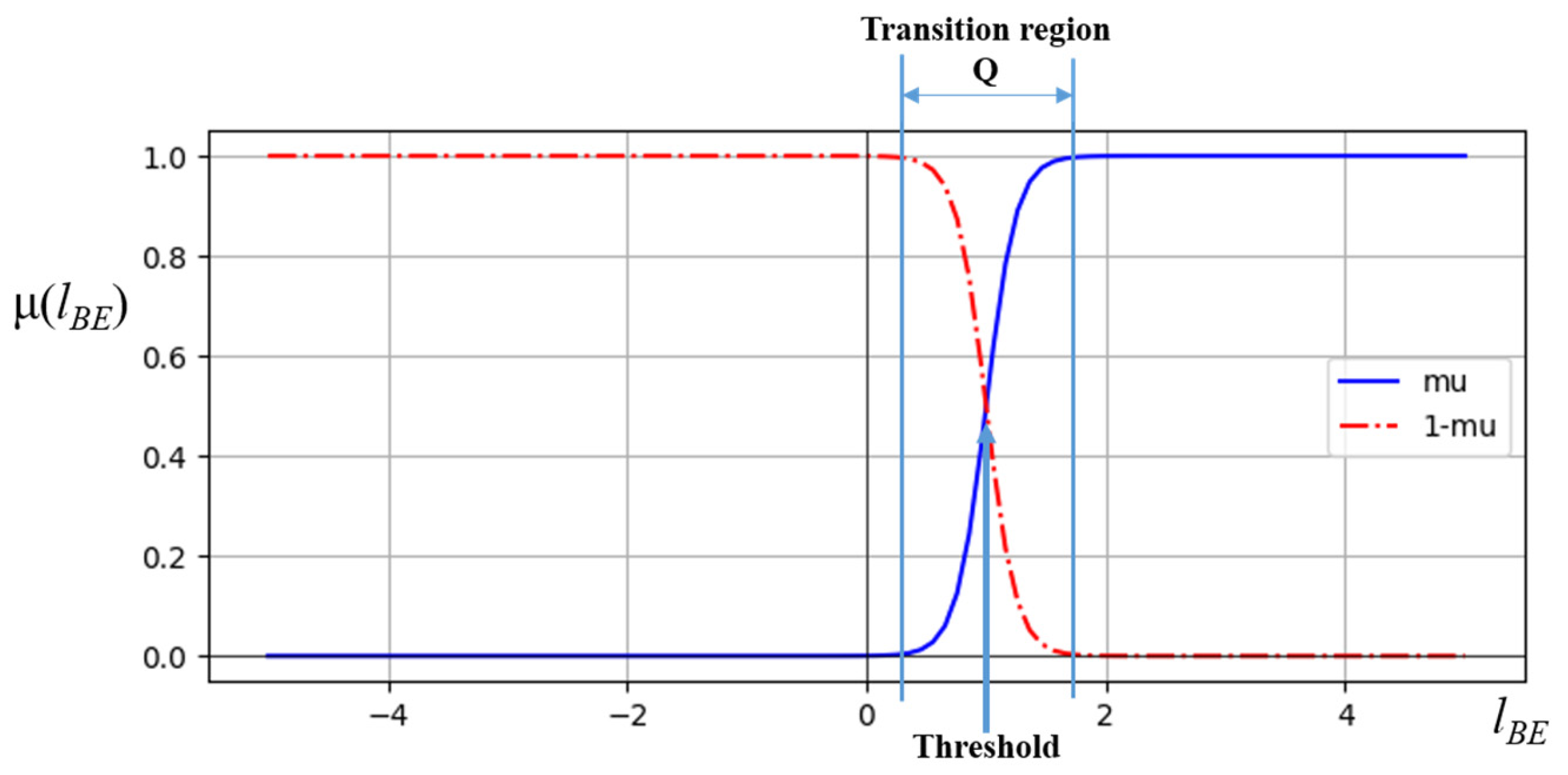 β are parameters that determine the width of the transition region.