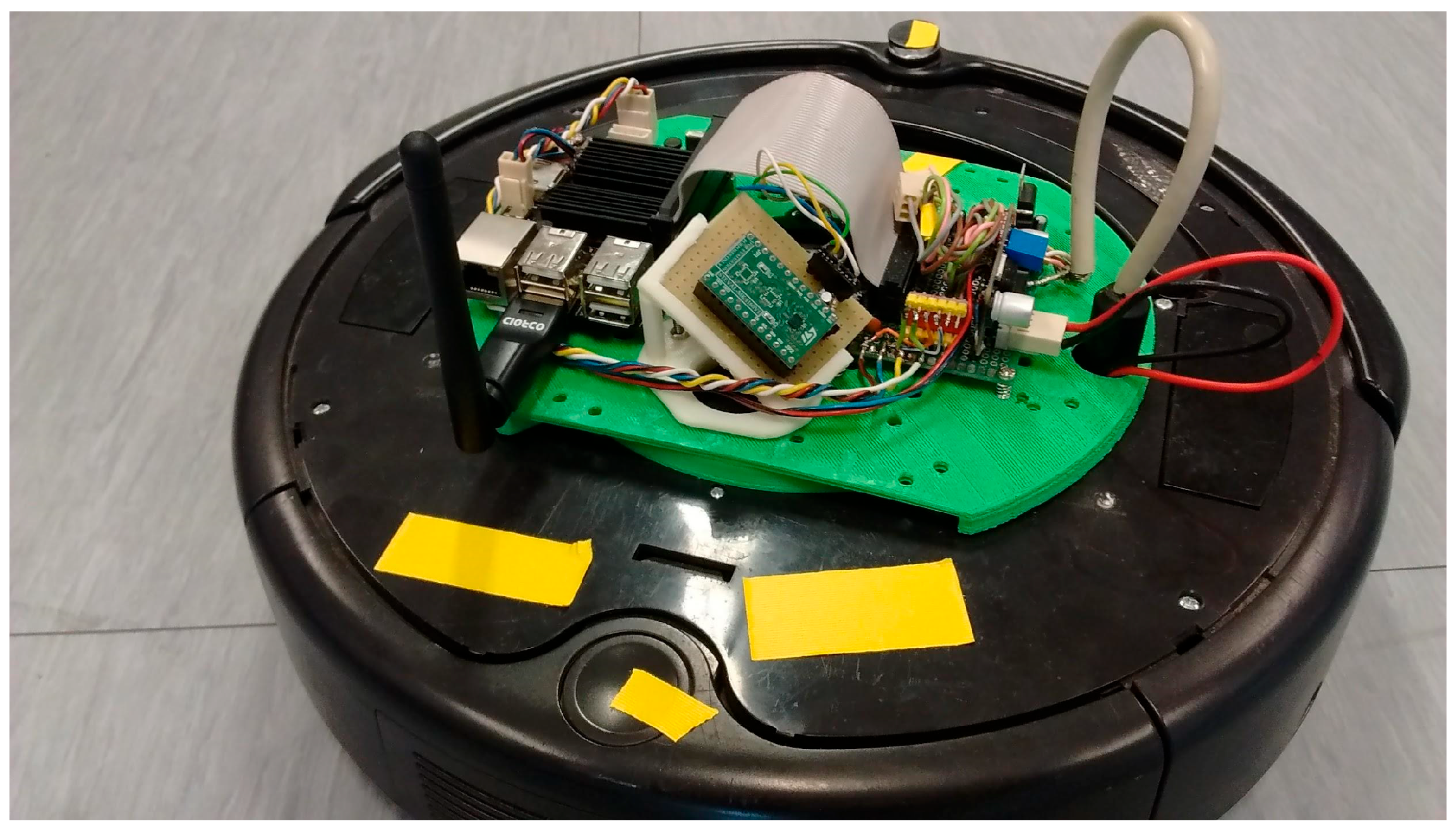- Cechowicz, R. Indoor Mobile Robot Attitude Estimation with MEMS Gyroscope. In Proceedings of the ITM Web of Conferences, Wuhan, China, 5 September 2017; EDP Sciences: Les Ulis, France, 2017; Volume 15, p. 05010. [Google Scholar]