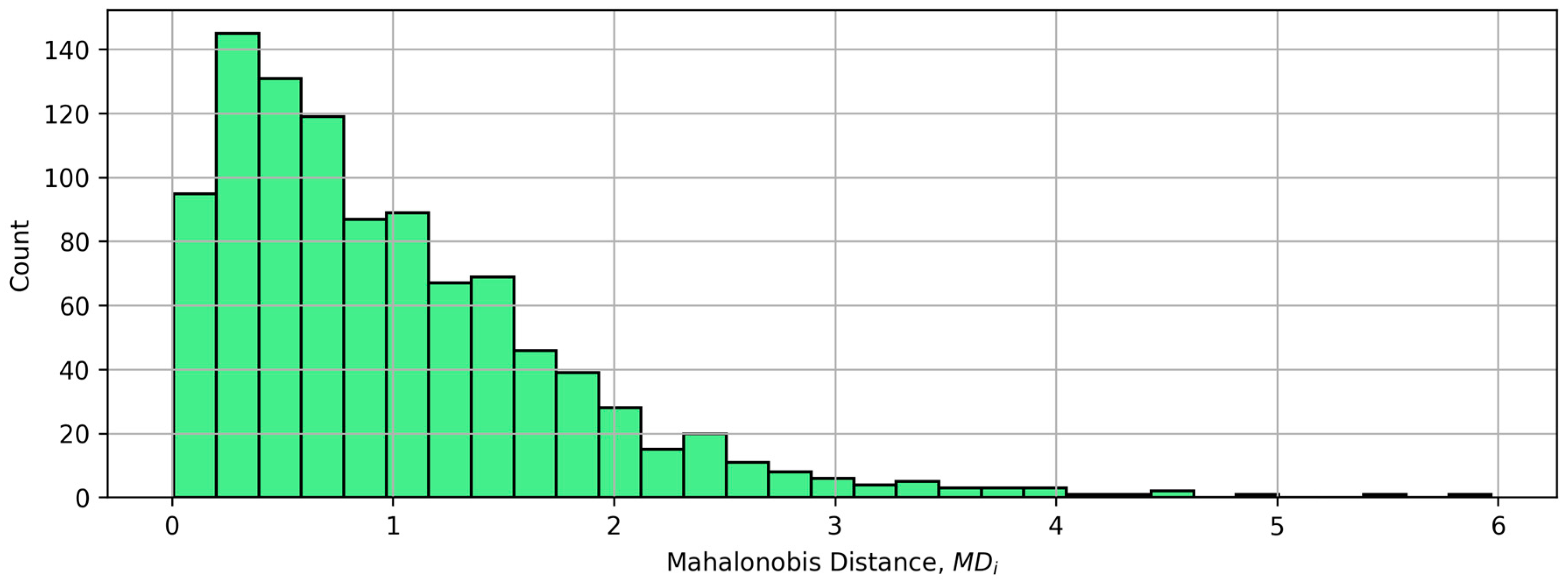 - Calculation of the MD value for each observation from the normal data set. Equation (2):