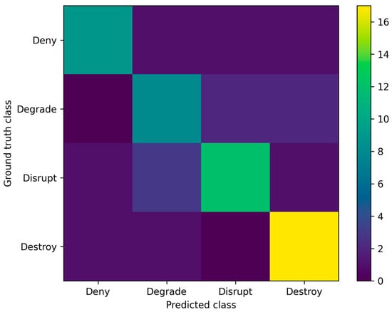 A particularly important result is the observed ability of the model to correctly classify the effects of incidents in the categories of deny, degrade, disrupt and destruction. Error analysis shows that errors are mainly concentrated between classes with similar operational consequences, reflecting the actual ambiguity that occurs in IoT/IIoT environments. From a risk analysis perspective, this means that the boundary between an acceptable level of degradation and an unacceptable disruption to process continuity may require additional expert assessment, which the LLM can support but not replace.
