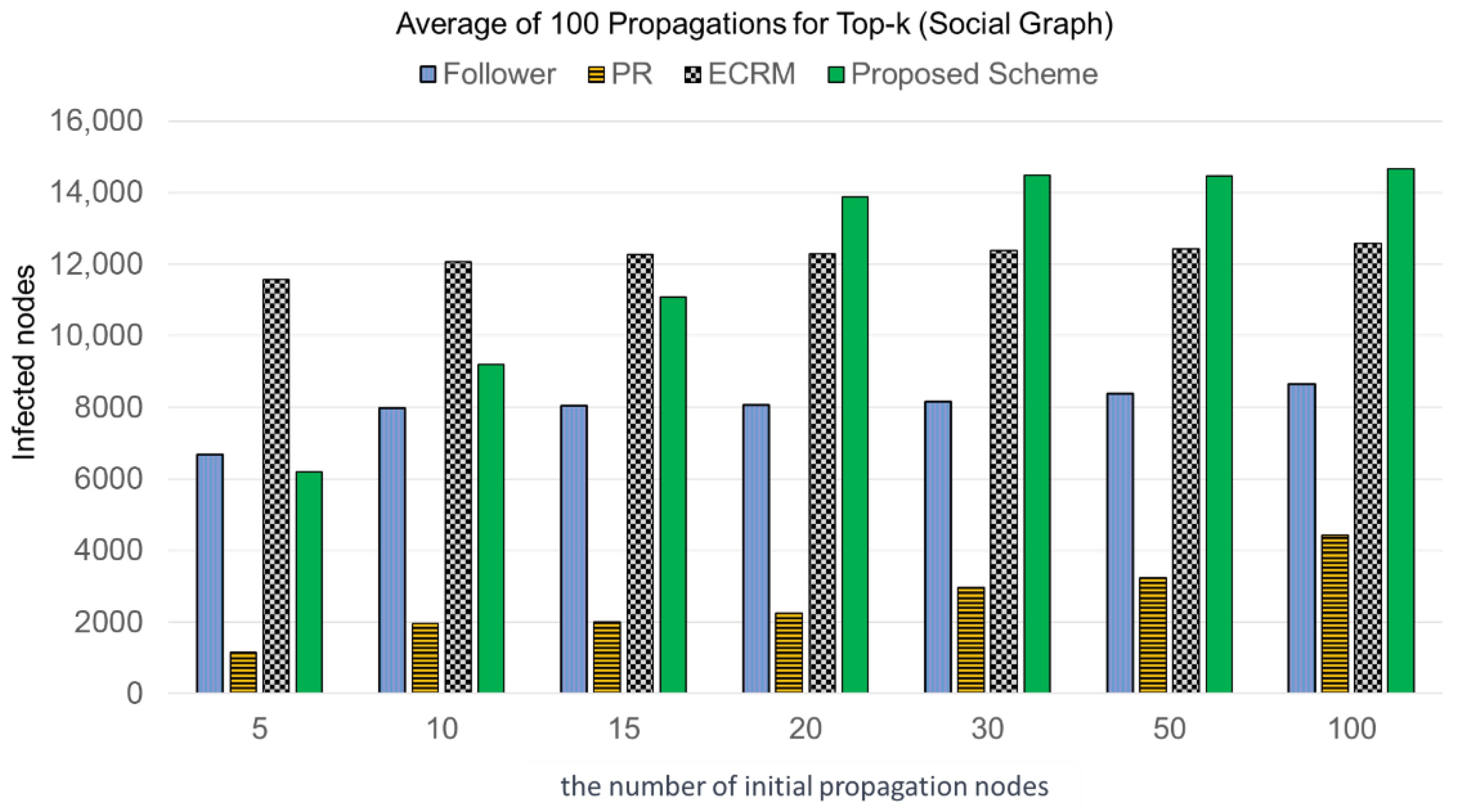 4.2. Evaluation Results of IC Model Propagation According to the Top-K Values