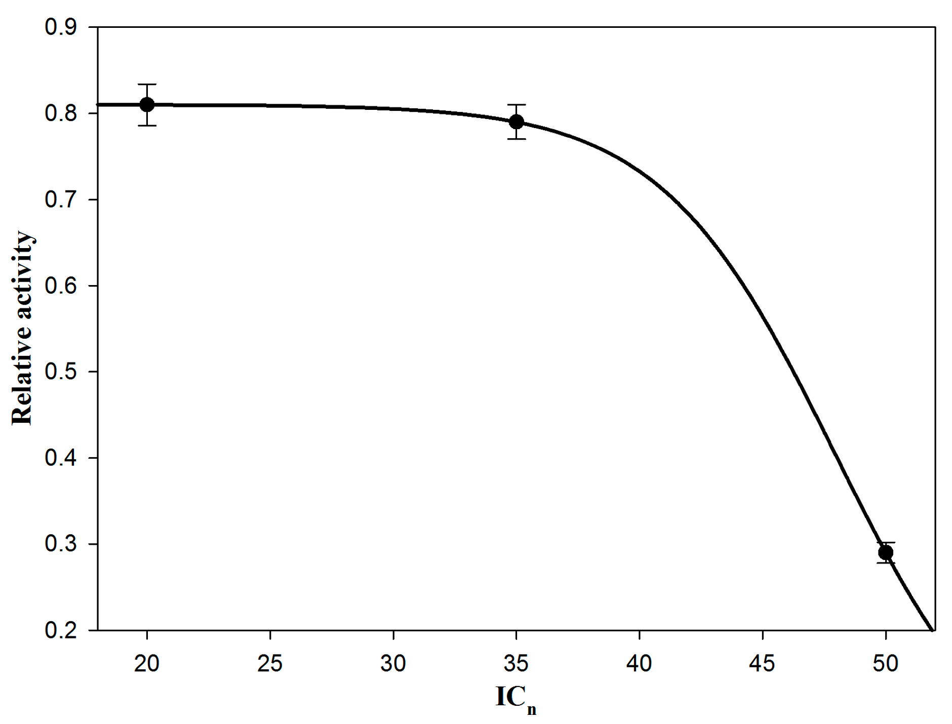 Figure 5. Inhibition of POP in HepG2 cells by extract of C. coggygria at three concentrations equal to IC20, IC35, and IC50. Relative activity is given in parts of a unit, whereas the enzyme activity in non-treated cells (controls) is accepted to be equal to 1.0. Each point is calculated as a mean of three independent experiments.