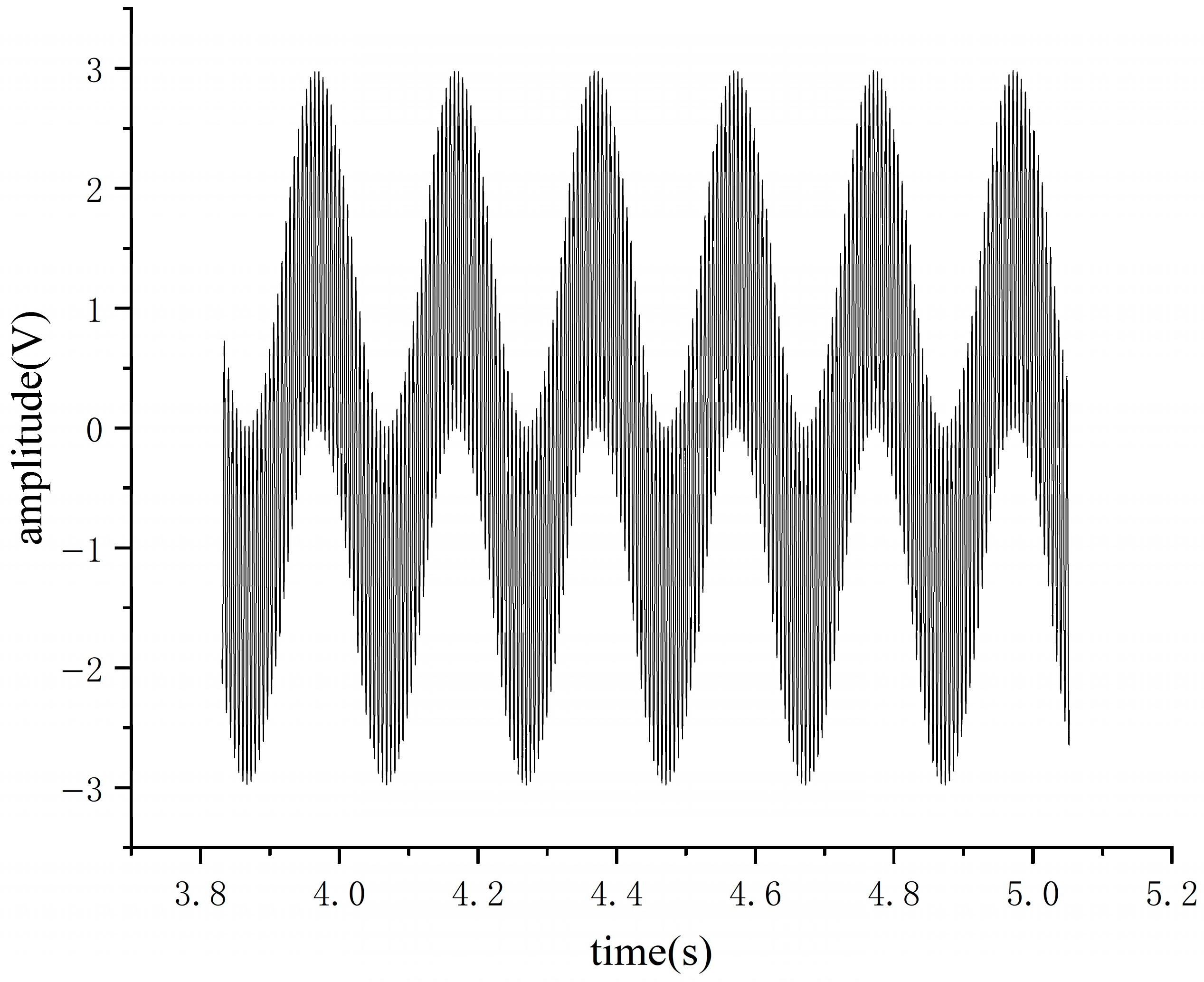 The simulation result of the dual-frequency sinusoidal wave generated using Multisim is shown in