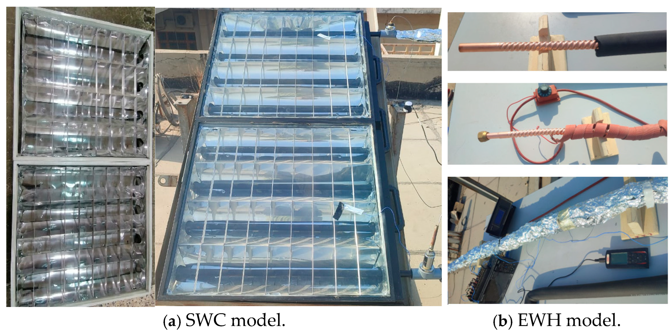 - Lokhande, S.P.; Dubey, H.K. Experimental Analysis of Solar Water Heater, with Heat Exchanger. IOSR J. Mech. Civ. Eng. 2017, 14, 55–59. [Google Scholar] [CrossRef]