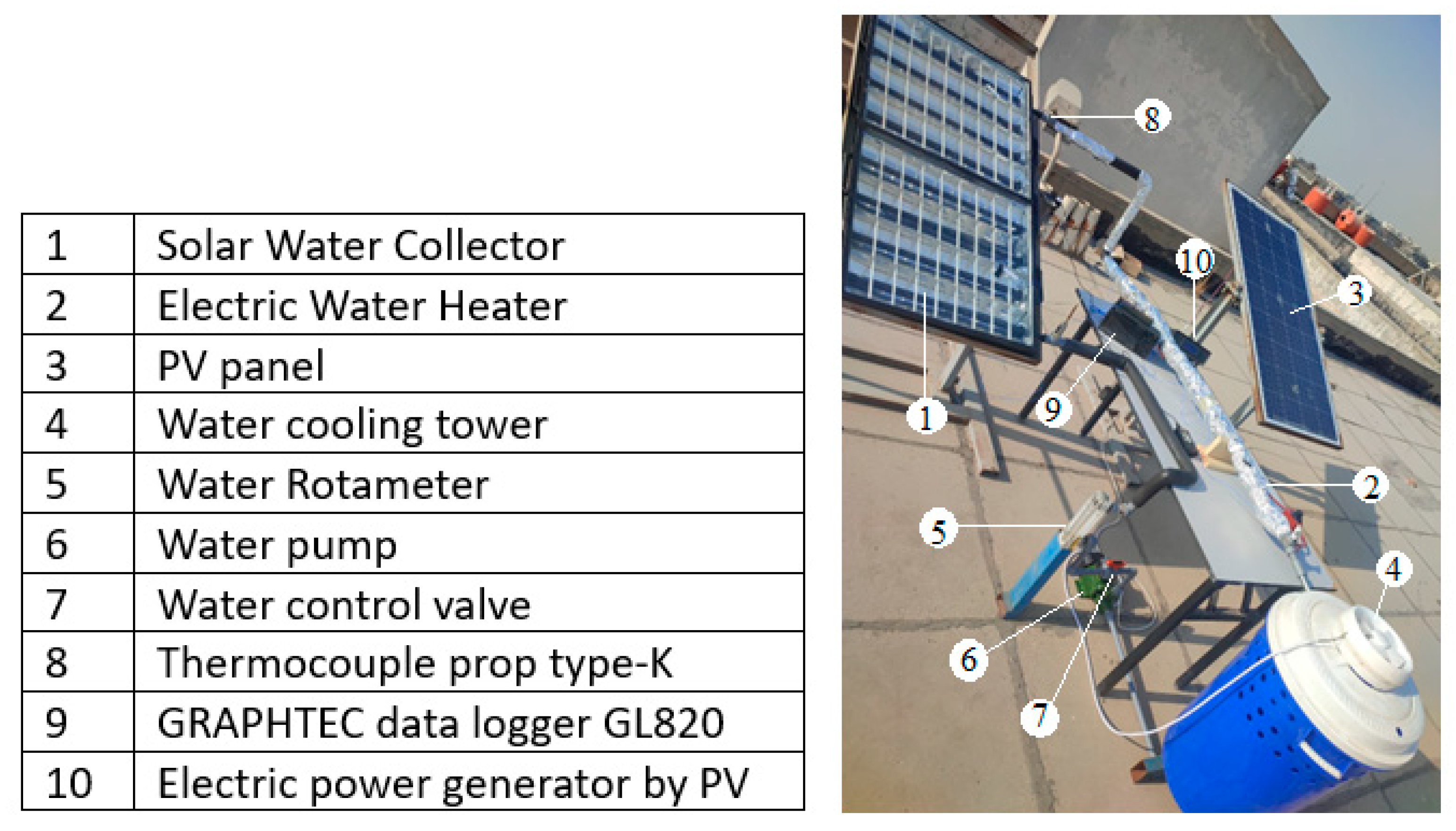 | Inlet and outlet temperatures from EWH | 2 points | 7:00 am to 7:00 pm |