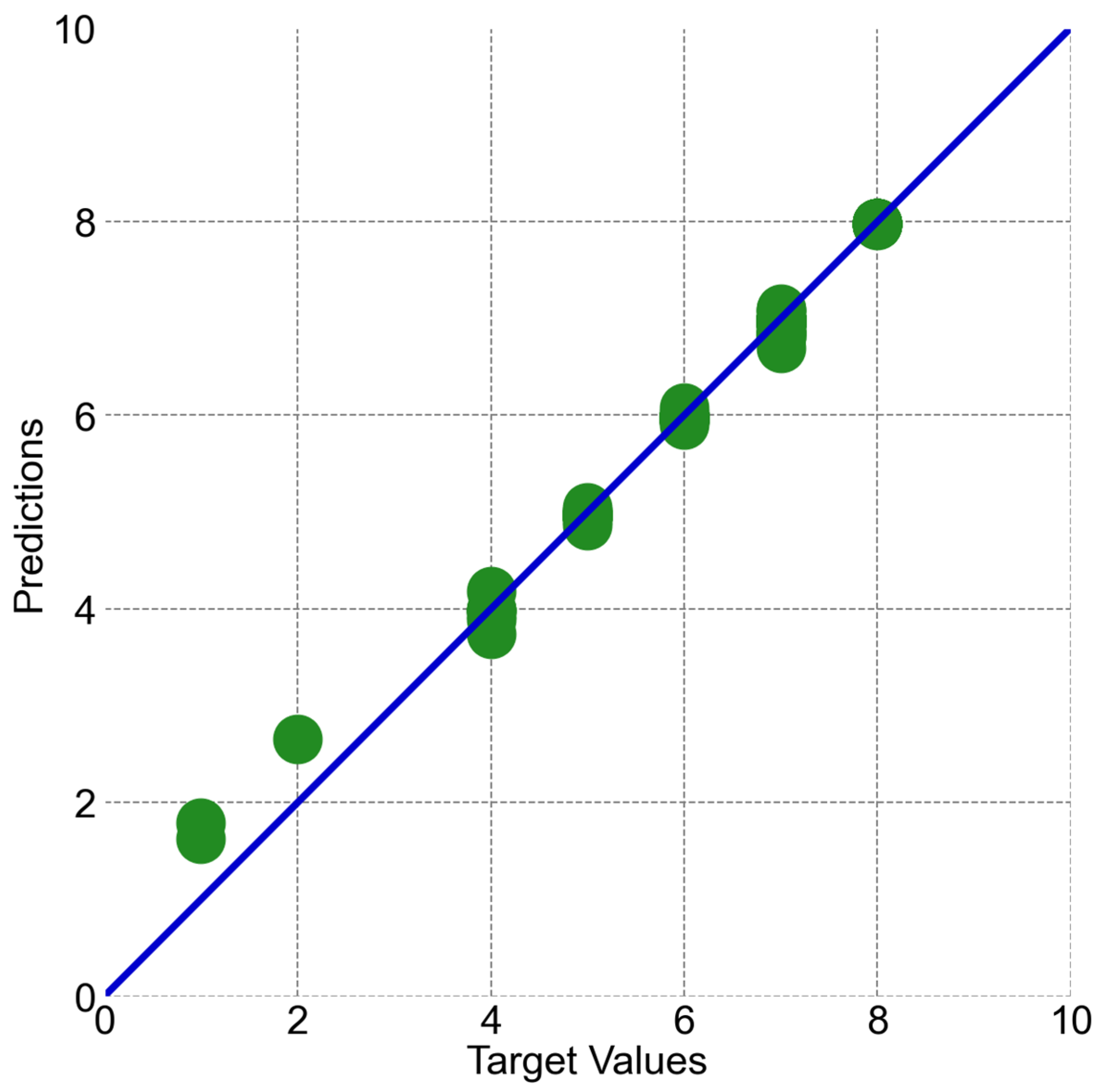 Figure 8 shows the distribution of the predicted and target values for Model 3.