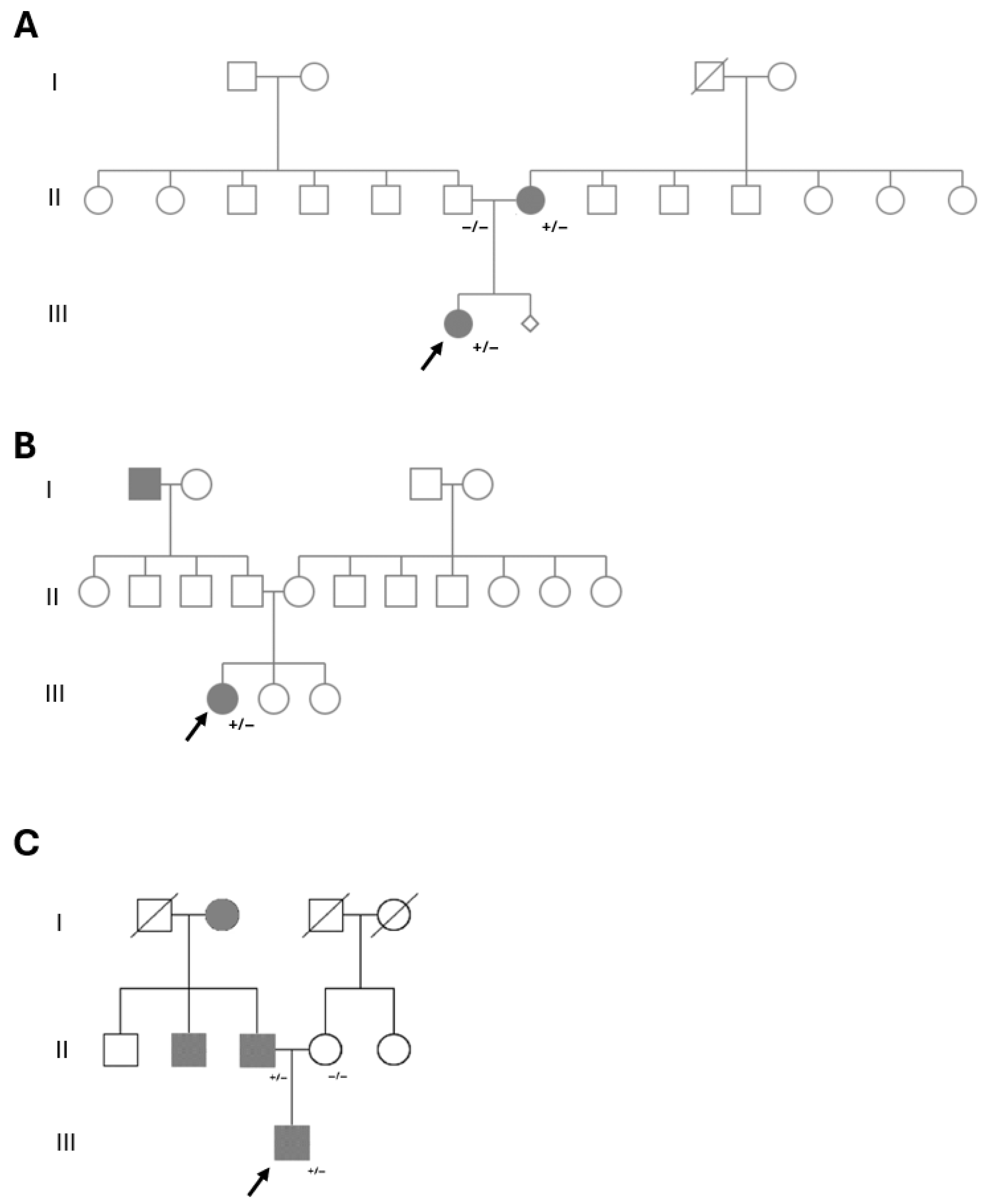 | Family No. | Patient No. | Type of Diabetes | Age at Diabetes Onset | Actual Age | BMI (kg/m2) | Actual HbcA1c | Additional Symptoms | Treatment |