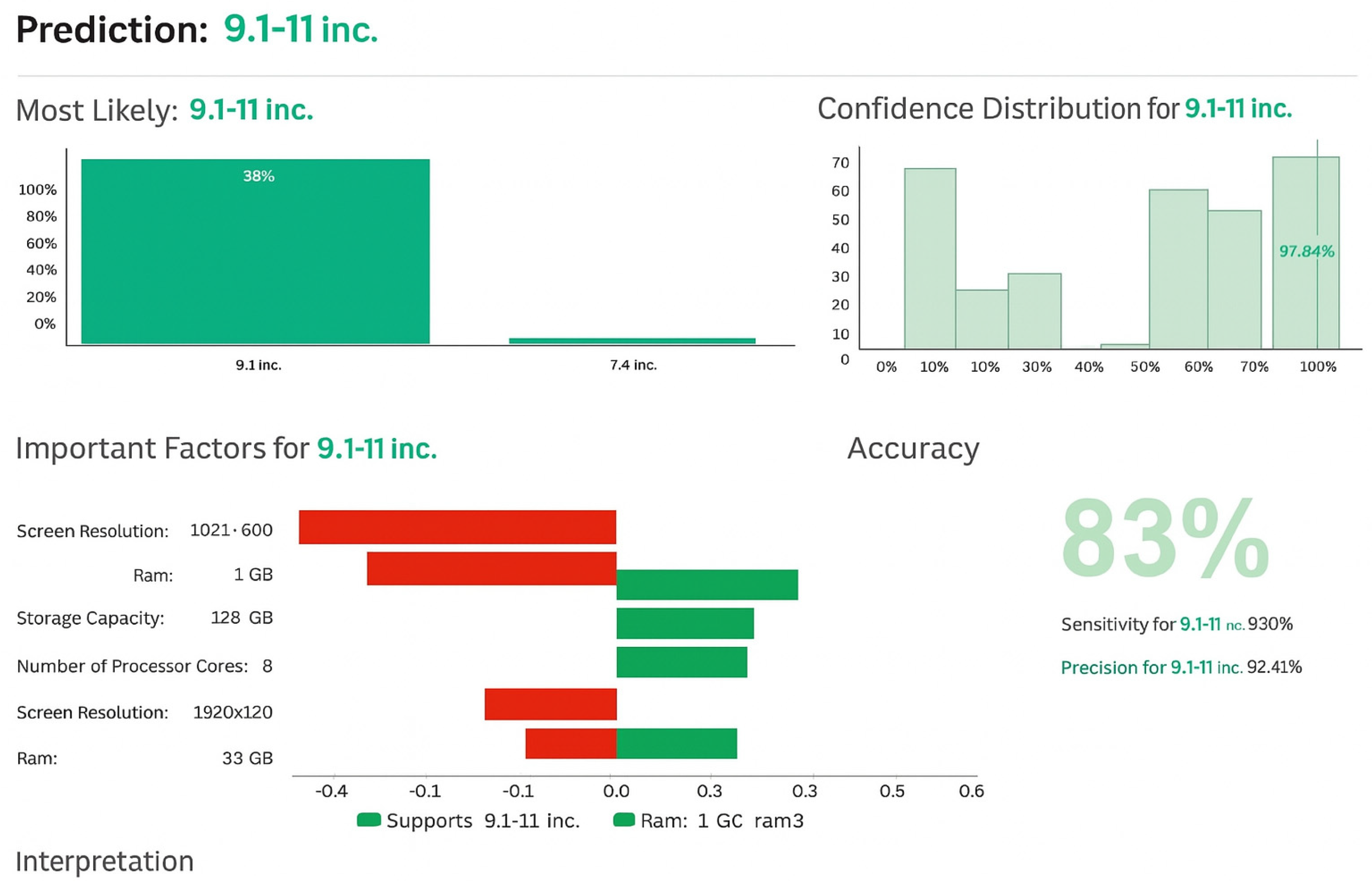 | Processor Speed (GHz) | Storage Capacity (GB) | Screen Resolution (Pixels) | Random-Access Memory (GB) | Number of Processor Cores | Battery Power (mAh) | Real Screen Size (Inc.) | ANN | DNN | RF |